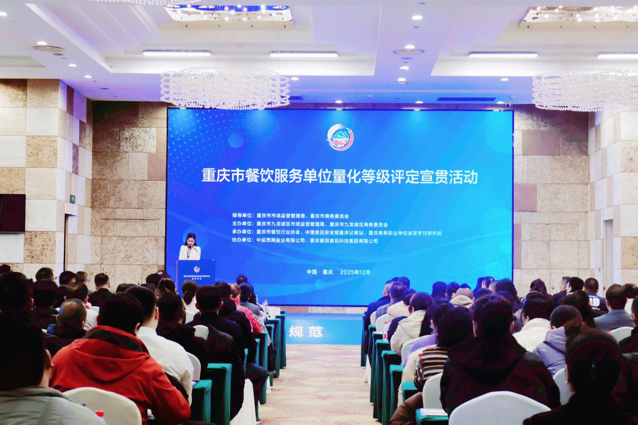 12月15日,《餐饮服务单位量化等级评定规范》(T/CQCY 003—2025)团体标准宣贯活动在九龙坡区举行。 该标准是为响应市场监管总局餐饮质量安全提升行动,抓实外卖餐饮评星定级,推动餐饮服务单位开展食品安全等级认证的要求,由重庆市餐饮行业协会联合多家权威机构共同制定的,旨在为全市餐饮服务单位建立一套科学、透明、可操作的量化分级认证体系。