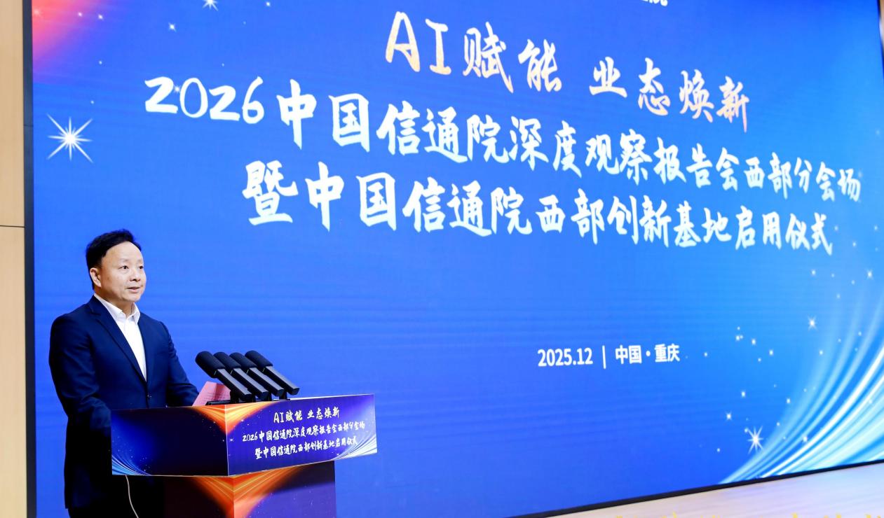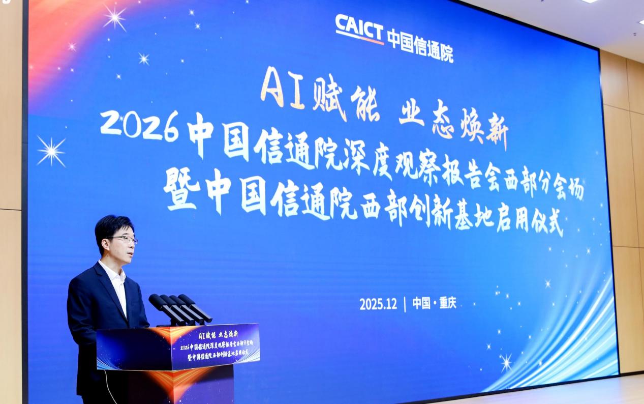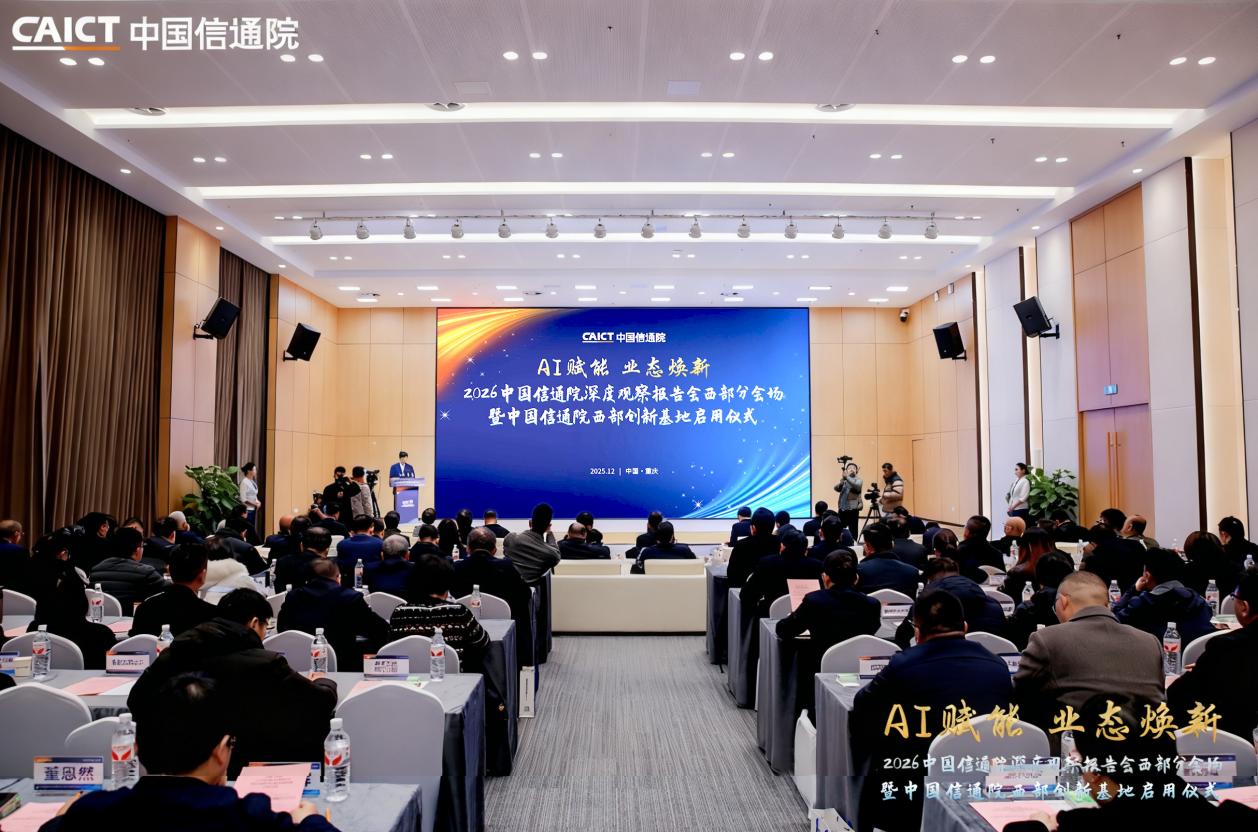 2025年12月14日,2026中国信通院深度观察报告会西部分会场暨中国信通院西部创新基地启用仪式(以下简称报告会)在重庆南岸成功举办。报告会以“AI赋能 业态焕新”为主题,聚焦西部地区信息通信产业发展趋势与数实融合最新实践,发布西部创新研究成果,深入探讨科技创新与产业创新深度融合路径,推动人工智能赋能新型工业化走深向实。
