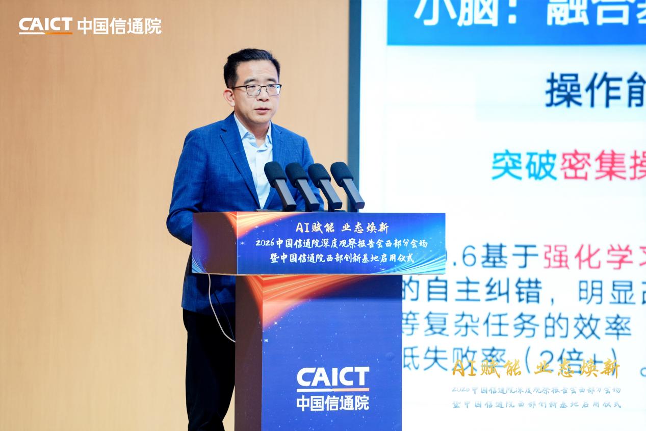 余晓晖向出席报告会的嘉宾表示欢迎,他指出,深度观察报告会是中国信通院精心打造的重要成果发布平台,至今已成功举办十八届,为全行业加快推进信息通信业现代化和新型工业化贡献智慧力量。当前,人工智能正从技术突破、产业融合等多维度创新落地,呈现出四方面趋势特点:一是基础大模型迭代显著加速;二是算力需求持续攀升;三是智能体助推应用落地;四是“人工智能+”激发新质生产力。重庆积极布局人工智能产业,在推动我国区域人工智能发展中发挥了先行示范作用。面向“十五五”,中国信通院将依托在渝设立的中国信通院西部分院(重庆信息通信研究院)和中国信通院西部创新基地,积极对接地方发展需求,开展人工智能领域的前瞻性、体系化布局,探索新型科研范式、攻关机制和场景应用。 新址启用:中国信通院西部创新基地正式投用