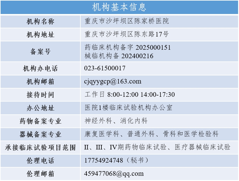 近日,国家药物临床试验机构备案管理信息平台与医疗器械临床试验机构备案管理信息平台相继发布公告,重庆市沙坪坝区陈家桥医院(重庆医药高等专科学校附属医院)药物临床试验机构(备案号:药临床机构备字 2025000151)与医疗器械临床试验机构(备案号:械临机构备字 202400216)均顺利通过新机构备案。这标志着该院正式取得开展药物与医疗器械临床试验的法定资质,在临床研究与医药创新领域迈出里程碑式步伐,将为区域医疗科研升级与群众健康保障提供有力支撑。 自 2024 年 5 月启动备案筹建工作以来,医院将临床试验机构建设作为高质量发展的核心举措,高位统筹、精准发力。在体系建设上,医院整合医疗、科研、管理等优势资源,健全组织架构,组建由临床业务骨干、科研管理专家构成的专业研究团队,围绕文件体系、培训机制、质量控制、信息管理等关键环节,搭建起全流程、闭环式的临床试验质量管理体系;在硬件保障方面,按高标准建成专用办公区、标准化物资储存室、规范化档案室及受试者接待室,配齐临床试验所需各类设施设备,为研究开展筑牢硬件根基。筹建期间,医院多次邀请药物临床试验质量管理规范(GCP)领域资深专家现场指导,逐项优化工作流程、破解筹备难点,确保备案各项准备工作扎实到位。 备案推进过程中,医院先后历经两次严格的现场核查并圆满达标。2025年3月20 日,重庆市药品监督管理局三局专家组对该院医疗器械临床试验机构开展专项检查;同年 10 月 28 日,该局联合重庆市药品技术审评查验中心专家组,对该院药物临床试验机构进行全方位核查。检查中,专家组通过听取工作汇报、与核心团队现场访谈、查阅文件资料台账、实地核查场所设施等多种方式,对机构组织管理、伦理委员会规范运作、备案专业科室能力等情况进行细致查验与专业指导。专家组充分肯定医院在临床试验机构建设管理方面的成效,同时针对发现的细节问题提出整改意见。医院第一时间响应,严格按照要求完成全流程整改,确保各项工作完全符合备案标准。 此次双备案成功,是医院科研实力与综合管理水平的集中体现,对提升区域临床科研水平、推动学科建设提质、增强医疗服务核心竞争力具有深远意义。一方面,备案成功为医院搭建起高水平临床研究平台,使其能够深度参与全国医药创新研发链条,加速科研成果与临床应用的转化衔接;另一方面,将为辖区患者带来更多前沿治疗技术、创新药物及医疗器械的试用机会,进一步拓宽治疗路径,提升群众就医获得感与满意度。 医院相关负责人表示,将以此次备案为契机,严格恪守 GCP 相关法律法规与行业规范,持续完善临床试验机构软硬件建设,积极承接各类高质量临床试验项目,不断提升试验运行效率与数据质量。同时,立足区域医疗需求,深化与科研机构、医药企业的合作,以更优质的医疗科研服务守护群众生命健康,为推动区域医药健康产业创新发展贡献力量。