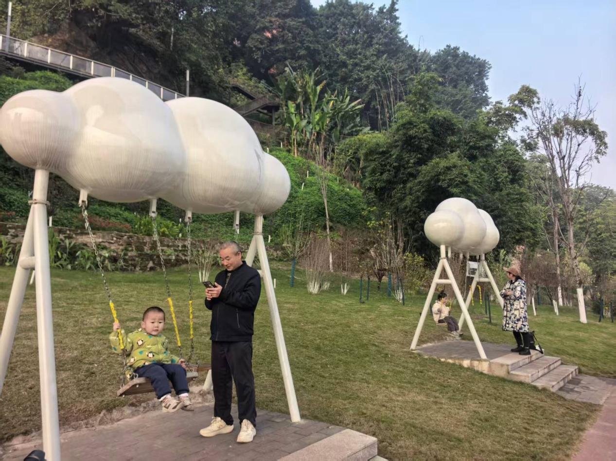 ▲整治后 改变始于一场深刻的综合治理。沙坪坝区以“三查、三治、三管”三步工作法,为这片土地注入了新生机。 查问题、查权属、查成因,摸清了45处具体问题,厘清了沙坪坝街道与区城投公司的权责关系,找到了管理缺位的症结所在。随之而来的“三治”,则是一场彻底的焕新:清理垃圾杂物3.5吨、枯树死树19株,治理污水直排;拆除乱搭建,清理违规菜地2400平方米;更关键的是,植入“绿化+文体+休闲”多元场景,按照中心城区首个气象公园的定位,利用独特的历史资源禀赋,增设抗战气象博物馆、“穿过四季的列车”观景栈道675米、健身步道1152米和六个主题游园。