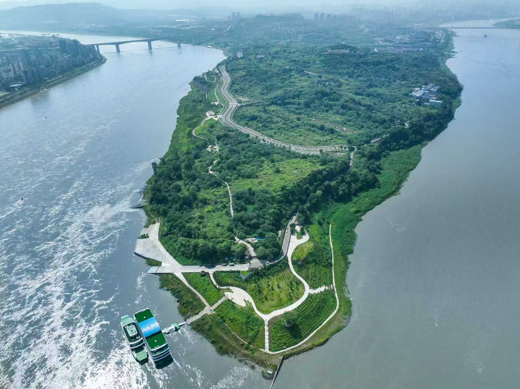 ▲整治后的公园花团锦簇。 如今这一处城中山体,早已不复往日模样。绿意盎然的“生态廊道”取代了曾经的“满目疮疤”,智慧气象公园不仅成为市民休闲的好去处,更获得了国家气候观象台建设重点配套项目、“发现重庆之美”最美山城绿道等八项荣誉。2025年5月15日,中国气象局联合17个国家部委成功召开全国智慧城市气象防灾减灾暨气象高质量发展试点现场会。 陡峭崖壁变全龄友好活力空间 在大渡口钓鱼嘴半岛上游段,另一场山体整治成果已经显现。起于鱼洞大桥北桥头,止于钓鱼嘴岛头,东西延展约5公里、南北平均宽度约150米的钓鱼嘴公园,曾是地形起伏显著、南北高差达40米、局部坡度接近垂直的复杂地块。安全隐患突出、杂乱无序的滨江空间,亟待一场系统性重生。
