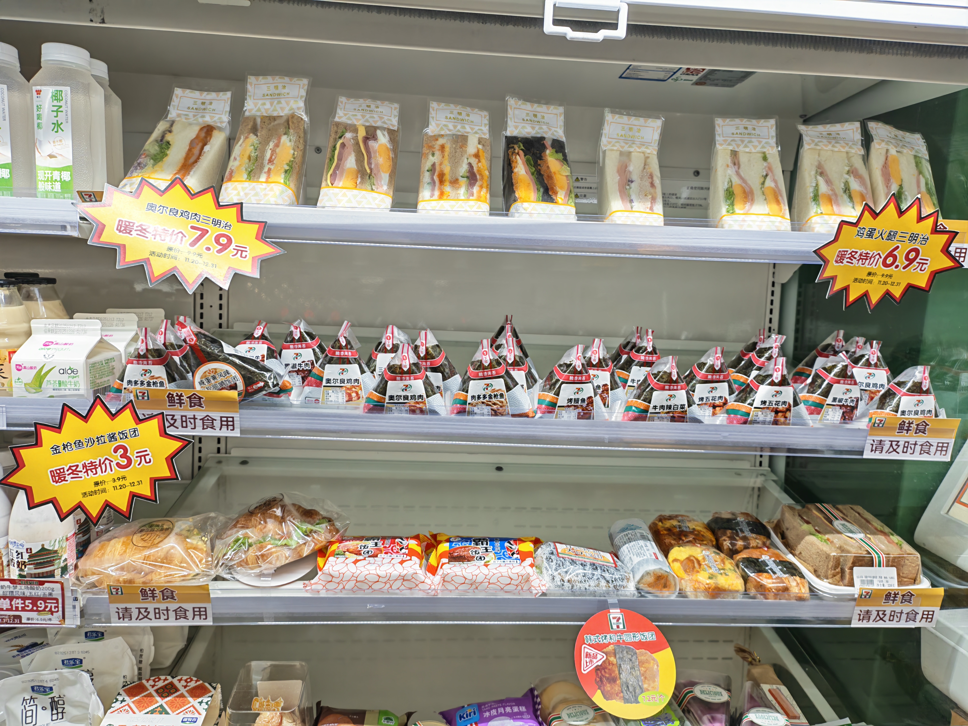 工作人员何女士见证着每个早晨的忙碌:“三十多份早餐,一般9点前就售罄。”据了解,肯德基早餐车已入驻光电园站、江北城站等多个早高峰枢纽,用高效与营养,为城市的奋斗者们注入“一早的鼓励”。 观音桥站:便利店里的“通勤刚需” 与此同时,9号线观音桥站8号出入口旁的7-Eleven便利店,正上演着一场无声的效率竞赛。货架上没有冗余的零食或日用品,全是经过精准筛选的“通勤刚需”:包子、玉米、烧麦、饭团、三明治、面包、牛奶、饮料等等。