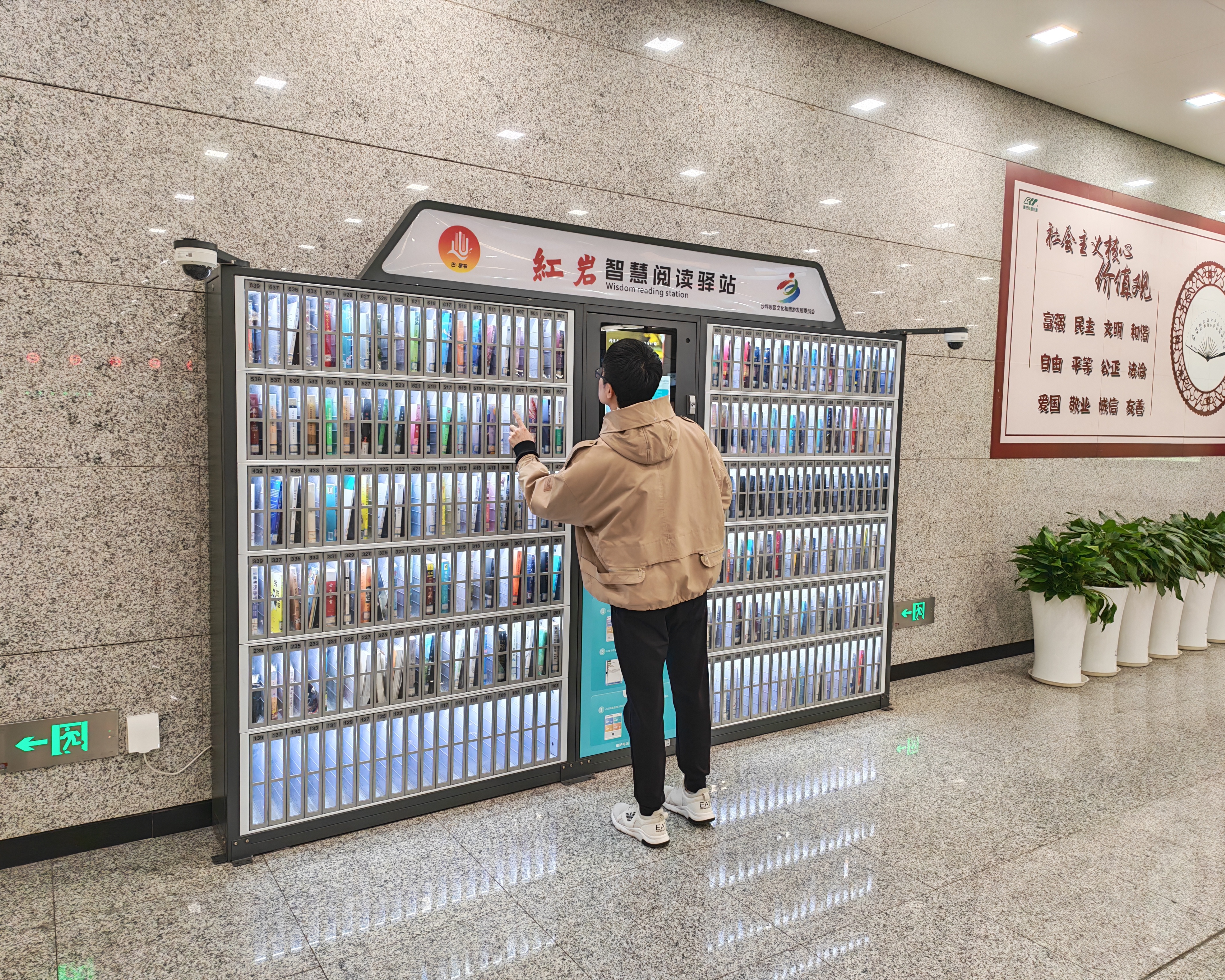 这里不仅是一个快速解决早餐的选择,更成了许多人心中一个固定的、带着甜味的晨间仪式。 沙坪坝站:书香配烟火的清晨交响 而在沙坪坝站这个大型换乘枢纽,清晨8点还有另一种“早餐”正在被领取。上班族吴先生将身份证放在“巴•掌书”自助借阅柜上,“嘀”声轻响,一本巴掌大小的书落入手中。这是他一天开始的“精神早餐”。