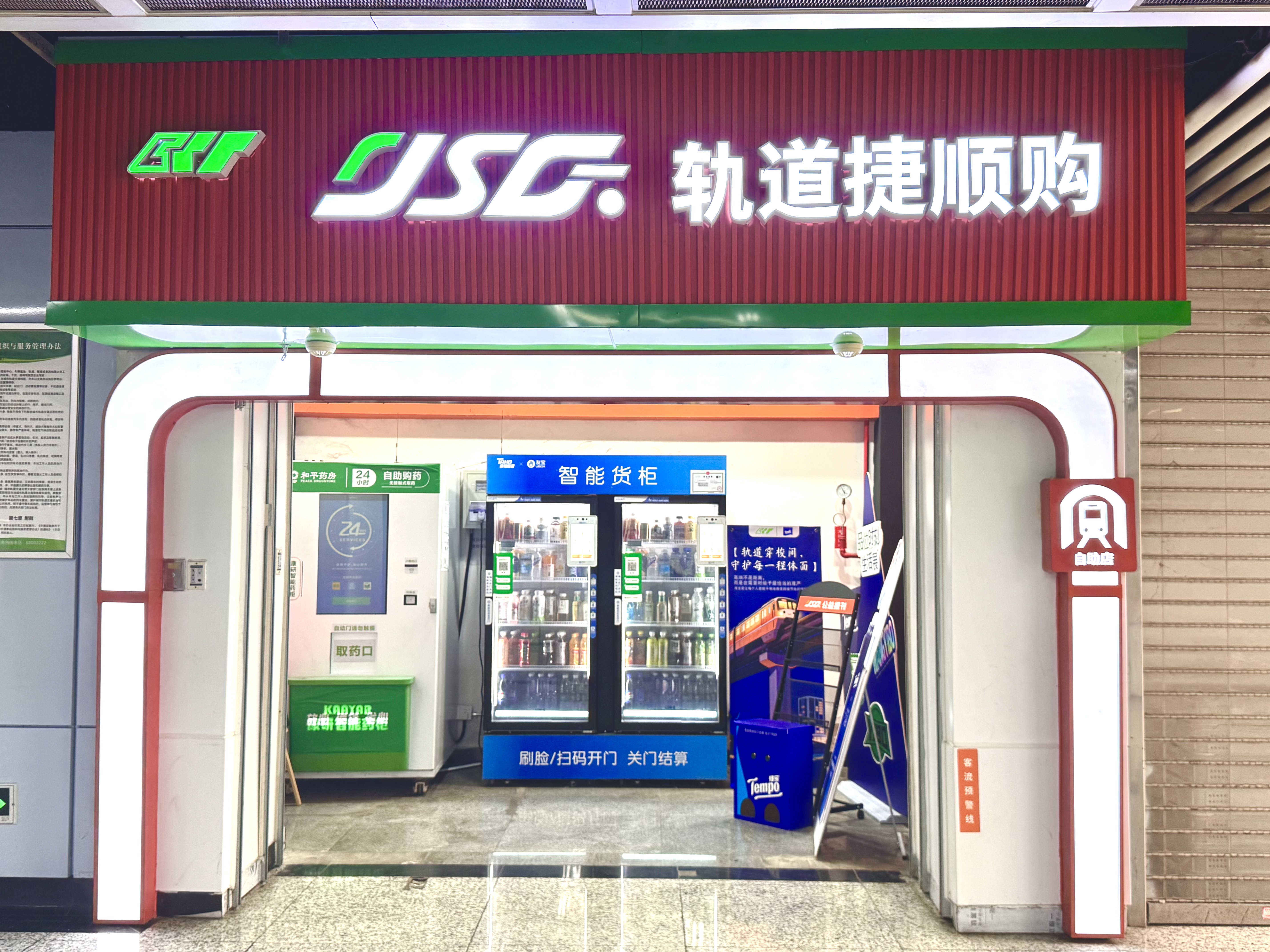 5号线重光站1号口的“光之环——万象之门”,以充满未来感的光影艺术迎接乘客;2号线动物园站的“熊猫为你拍照”创意,则用可爱的巧思点亮日常通勤。这些特色站点将功能性空间转化为文化展示窗口,让匆忙的脚步有了驻足的理由。 牛角沱站:捷顺购守护“不时之需” 午后,牛角沱站的轨道捷顺购自助便利柜安静伫立,柜内饮品和常用药品陈列整齐。这个无人值守的“沉默伙伴”,守护着乘客们不时之需。