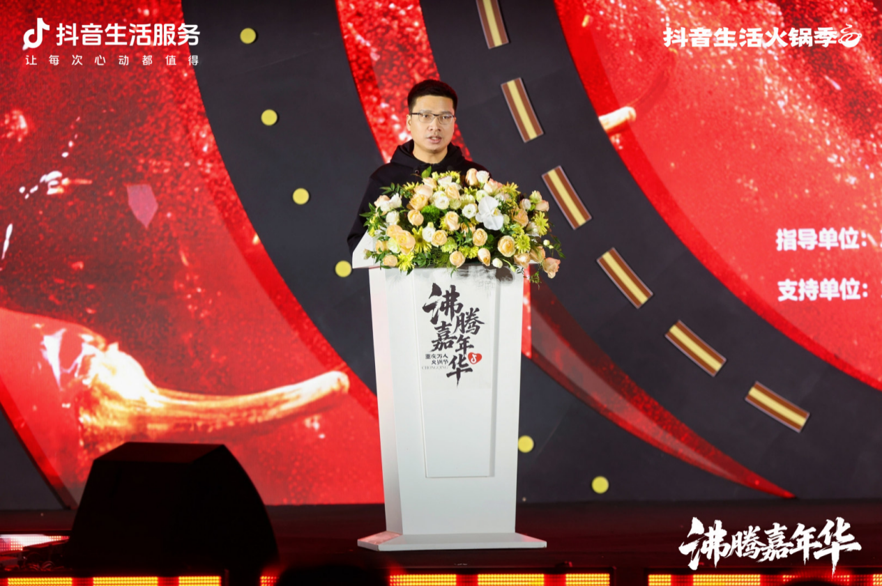 (重庆市商务委员会主任 章勇武) 重庆市商务委员会主任章勇武在开幕式致辞中表示,重庆火锅承载着巴渝文化的深厚底蕴,是促进消费、拉动产业、繁荣市场的重要力量。当前,重庆正全力打造“世界火锅之都”,并积极推进全国首部火锅产业立法,系统构建火锅产业标准体系、品牌体系和生态体系。他指出,此次与抖音生活服务合作举办万人火锅节,是深化“互联网+火锅”融合、以数字消费助推产业升级的关键举措,旨在让传统火锅拥抱新场景、链接新市场、焕发新生机。
