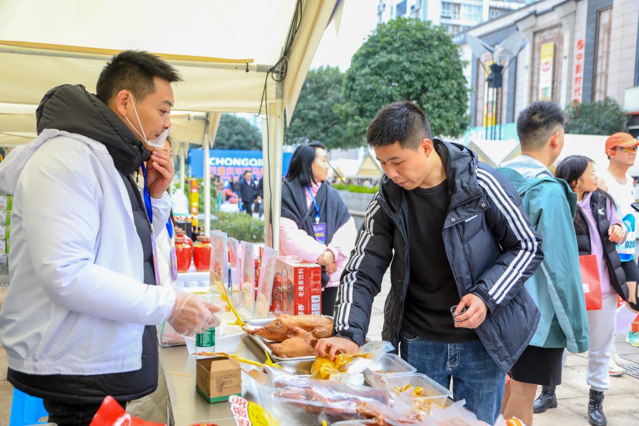 展位内,商家们忙得脚不沾地,一边快速打包商品,一边耐心解答咨询,不少展位前还出现了“补货潮”。“没想到人气这么旺,上午备的货已经卖空一半,刚让库房紧急送了两批过来!”销售小面底料的商家李女士擦着额头的汗,语气里满是惊喜。来自木洞的两个油酥鸭品牌也先后卖断了货,工作人员忙着招呼大家,“新的一批鸭子马上到,马上到哦,请大家稍候。”