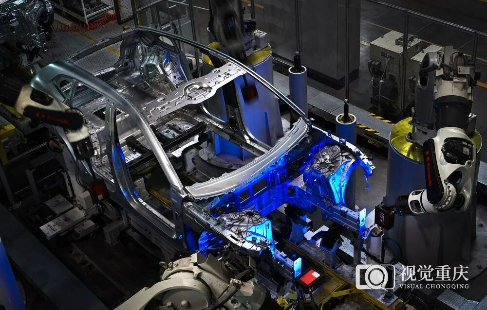 ▲6月26日,位于两江新区(原渝北区)的长安汽车数智工厂,机器人配合AI视觉在线检测系统检测车身精度。记者 张锦辉 摄/视觉重庆