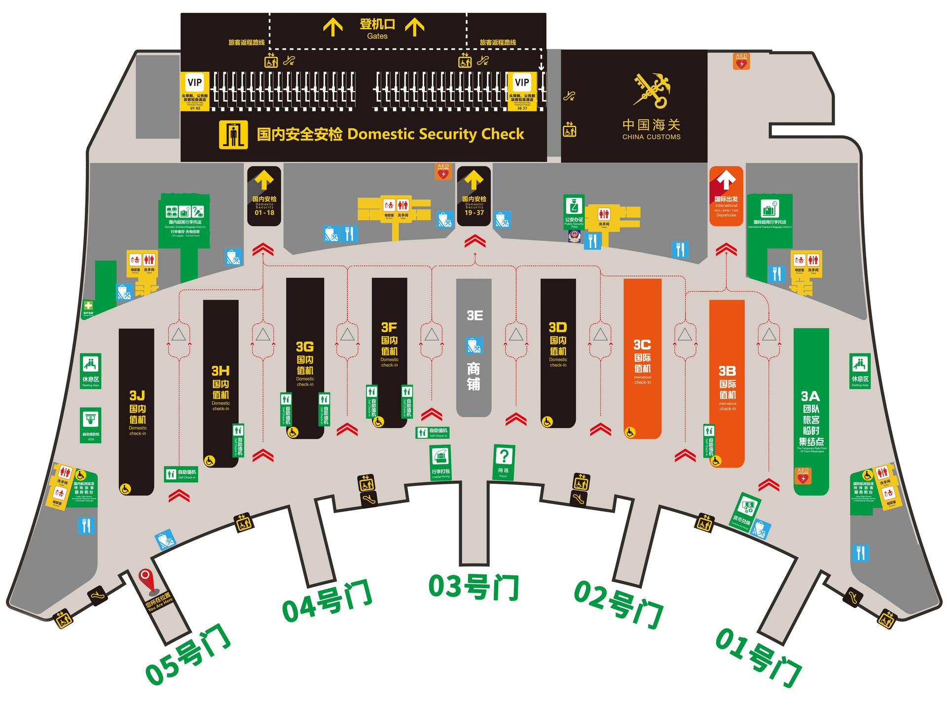 ▲T3航站楼大值机岛分布图。重庆江北国际机场供图 12月23日起,华夏航空、东海航空、湖南航空将调整至3J值机岛办理乘机手续。四川航空将在3D值机岛一侧办理乘机手续。 厦门航空、春秋航空、江西航空、吉祥航空、长龙航空、河北航空、成都航空、昆明航空、瑞丽航空、奥凯航空、九元航空、桂林航空、青岛航空、龙江航空、多彩贵州航空已于12月19日起调整至3J值机岛办理乘机手续。其余航空公司值机区域保持不变。 在3H值机岛办理乘机手续的航空公司有:中国国际航空、山东航空、深圳航空、西藏航空。 在3G值机岛办理乘机手续的航空公司有:海南航空、东方航空、西部航空、天津航空、首都航空、祥鹏航空、北部湾航空、上海航空、福州航空、中国联合航空、长安航空、金鹏航空、乌鲁木齐航空。 在3F值机岛办理乘机手续的航空公司有:中国南方航空、重庆航空。 值得注意的是,目前,T3航站楼负一层和四层均可以办理乘机手续。在T3航站楼负一层,国内航班可实现值机、安检手续通办,除春秋、九元航空外,其余所有航空公司均可在此层办理乘机手续和安检。