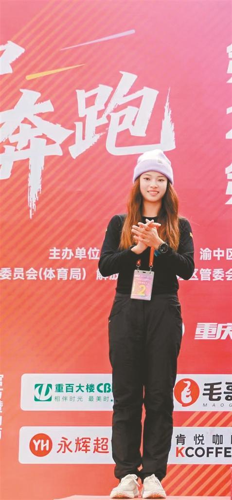 ▲罗娉获得“第十三届解放碑登高楼大赛”大众女子组亚军 热情点燃 源于去年的一次志愿者经历 冬日午后,观音桥星光68广场附近,重庆晚报记者见到了刚在跑友处取完运动装备的罗娉。与赛场上一身专业装备、神情专注的模样不同,此时的她身着休闲装,笑容温和,仿佛邻家女孩。 3年前,24岁的罗娉还是一名需要久坐的上班族,“那时候就是想减肥,也改善一下亚健康状态。”抱着最简单朴素的愿望,她加入了一个徒步群,“山野的新鲜空气、同伴的欢声笑语让我对户外运动产生了好感。” 而真正点燃她奔跑热情的,是去年12月的一场越野赛。作为志愿者,她在补给站目睹选手们轻装疾行、穿梭山林的身影。“他们穿得那么少,在山里跑不会冷吗?”这个看似简单的问题,成了她推开越野跑大门的钥匙。她,开启了自己的奔跑时间。 从最初跑3公里就气喘吁吁,到能轻松完成10公里,她只用了2个月。“跑步还让我从‘i人’变成了‘e人’,不仅身体变好了,性格也开朗了许多。”