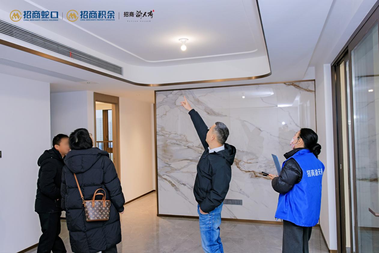 臻心服务 超预期交付 交房即交证 兑现圆满家期 交付现场的热度,是市场对招商蛇口产品力与交付力的最直接认可。项目负责人透露,交付期间到访接房率高达96%,延续了招商渝天府一贯的优异表现。作为践行产品主义的样板,招商蛇口将精细化管理与人性化服务深度融合到交付的每一个环节当中。交付前,招商蛇口通过工地开放日,主动收集并闭环处理业主优化建议,从源头保障交付品质。