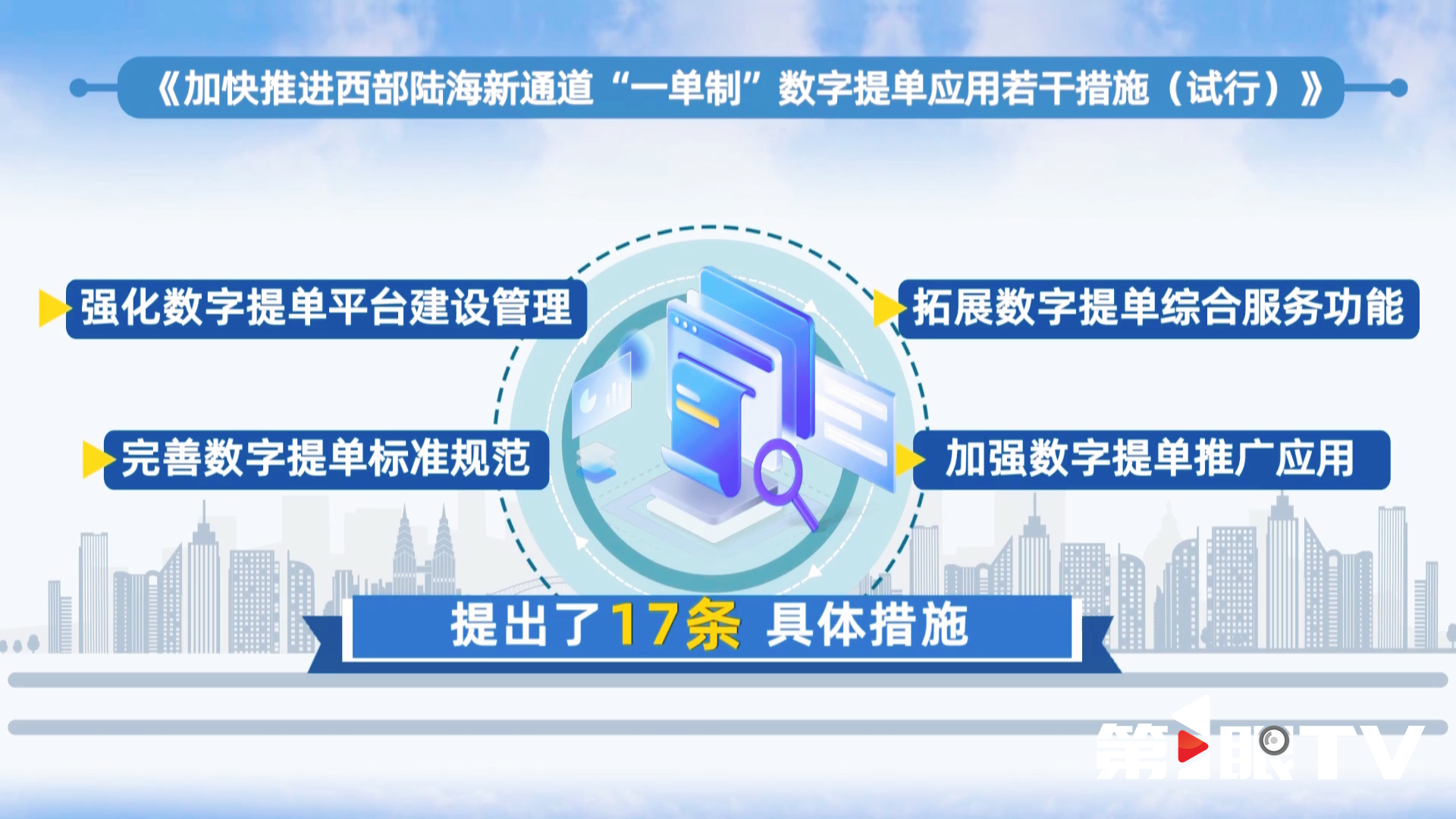 观察这21条金融赋能措施,可以梳理出两大关键词:“高效能”“高强度”。它不只是支持一条物流通道,更是要通过系统性金融创新,极大压缩“通道带物流、物流带经贸、经贸带产业”这一发展逻辑的实现周期。比如“探索沿线分支机构授信一体化”,旨在打通金融血脉的“任督二脉”,消除省际藩篱带来的资金流速损耗;而“西部陆海新通道基金”的设立,则为关键节点注入高强度资本推力,而这也意味着,重庆,将从物理通道的“调度员”,加速转变为区域金融资源的“配置者”。这一转变的速度与成效,将直接决定整个通道经济循环的效率。在这份意见出台之前,重庆印发《加快推进西部陆海新通道“一单制”数字提单应用若干措施(试行)》,为全国多式联运“一单制”实践提供先行探索。 4大方面 17条措施 重庆亮出“一单制”数字提单“组合拳” 《加快推进西部陆海新通道“一单制”数字提单应用若干措施(试行)》,从强化数字提单平台建设管理、完善数字提单标准规范、拓展数字提单综合服务功能、加强数字提单推广应用等4大方面,提出了17条具体措施。措施聚焦堵点卡点,精准施策,如推动构建综合服务体系,打通数据链与业务链,让数字提单覆盖签发、流转、融资、结算、保险等全链条生态。