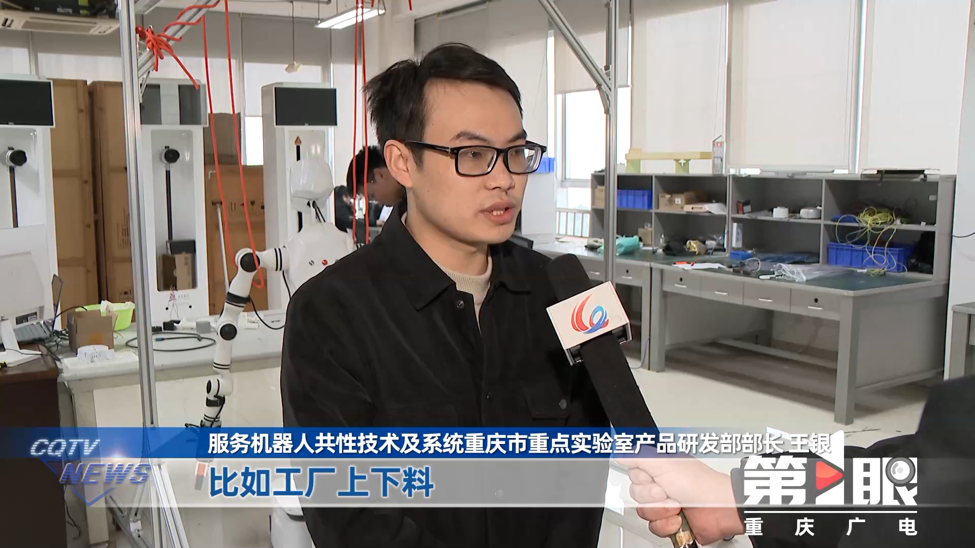 这台机器人包含三大核心技术模块,包括环境感知模块、运动控制模块和人机交互模块,拥有高算力和多传感器的特点,能识别图像、语音、光感、压感,这让它不仅具有聪明的大脑,也有细腻的感知,相当于一个“智能工人”,在电子元器件生产、物流分拣包装等领域,应用前景广泛。 服务机器人共性技术及系统重庆市重点实验室产品研发部部长王银说,这款机器人在实际生产过程中,实用性很强。比如工厂上下料换件,如果要操作不同工件,传统的机器人要进行不同的编程。而这个机器人,只需要编程一次之后,就可以凭借灵活的感知和强大的分析处理能力,根据工件大小自动识别、自动运行。 未来,实验室还会研发医疗领域机器人、教育领域机器人等,来为产业发展服务。