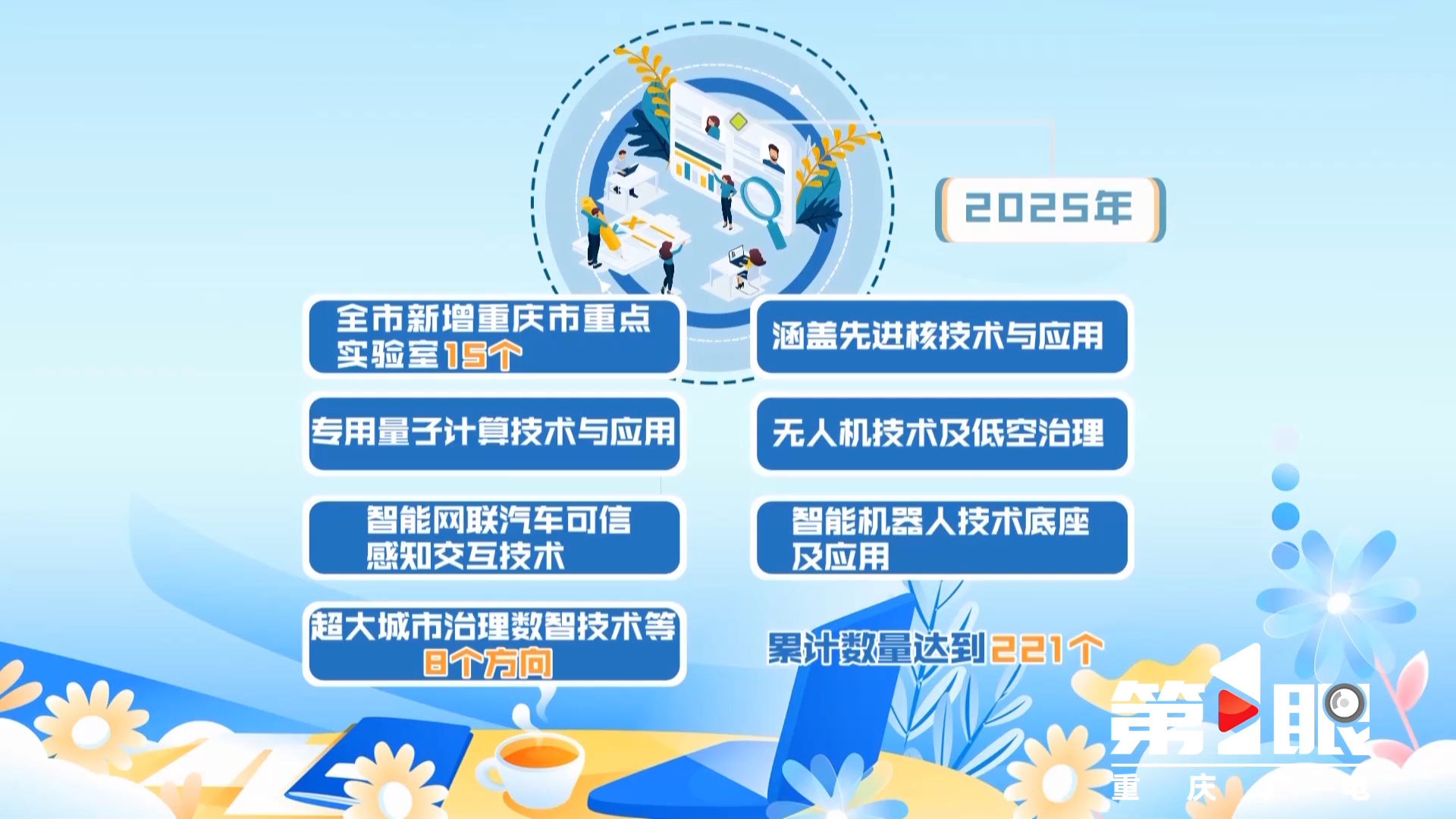 从“33618”现代制造业集群的加速崛起,到西部陆海新通道的提质增效;从“416”科技创新布局的纵深推进,到营商环境优化升级的持续深化;从城乡融合发展的生动实践,到美丽重庆建设的扎实步伐;从民生福祉的不断改善,到文化强市建设的丰硕成果……2025年,重庆这片土地上的每一处变化,都凝聚着全市人民的智慧与汗水;每一项成就,都彰显着新时代新重庆的底气与决心。 嘞一年,民之口碑是发展的出发点和落脚点;嘞一年,锐意革新是发展的方向和方法;嘞一年,这座城市的人们躬体力行,带着最大的热忱,务实地干、努力地干,一天天地把蓝图化作了现实。 民之口碑如山厚重,锐意革新如潮奔涌,躬体力行如磐坚定。 站在年度交汇点回望,是为了更好地出发。第1眼TV特别策划“新重庆嘞一年”,透过一个个生动的案例,全景呈现2025年新重庆各领域的发展成就,共同解读嘞一年重庆经济社会运行的逻辑和动力,感受这座城市跳动的脉搏和奋进的足音。 12月22日,重庆市委经济工作会议提出,要强化创新驱动构建现代化产业体系,深入推动重点产业链高质量发展。 今年以来,我市紧扣“416”科技创新布局,全力推进重点实验室建设,一批优质科技成果加速涌现,第一时间转化为现实生产力,为“33618”现代制造业集群体系的发展壮大注入澎湃动能。