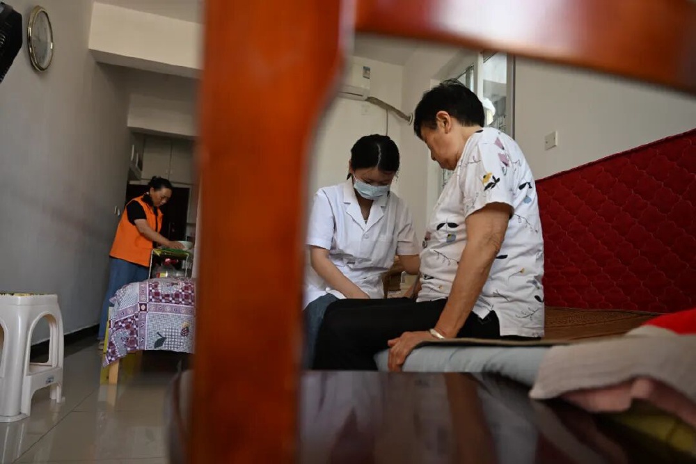▲6月16日,璧山区璧城街道杨柳坝社区,工作人员在居民家中为老人提供清洁、体检服务。记者 崔力 摄/视觉重庆