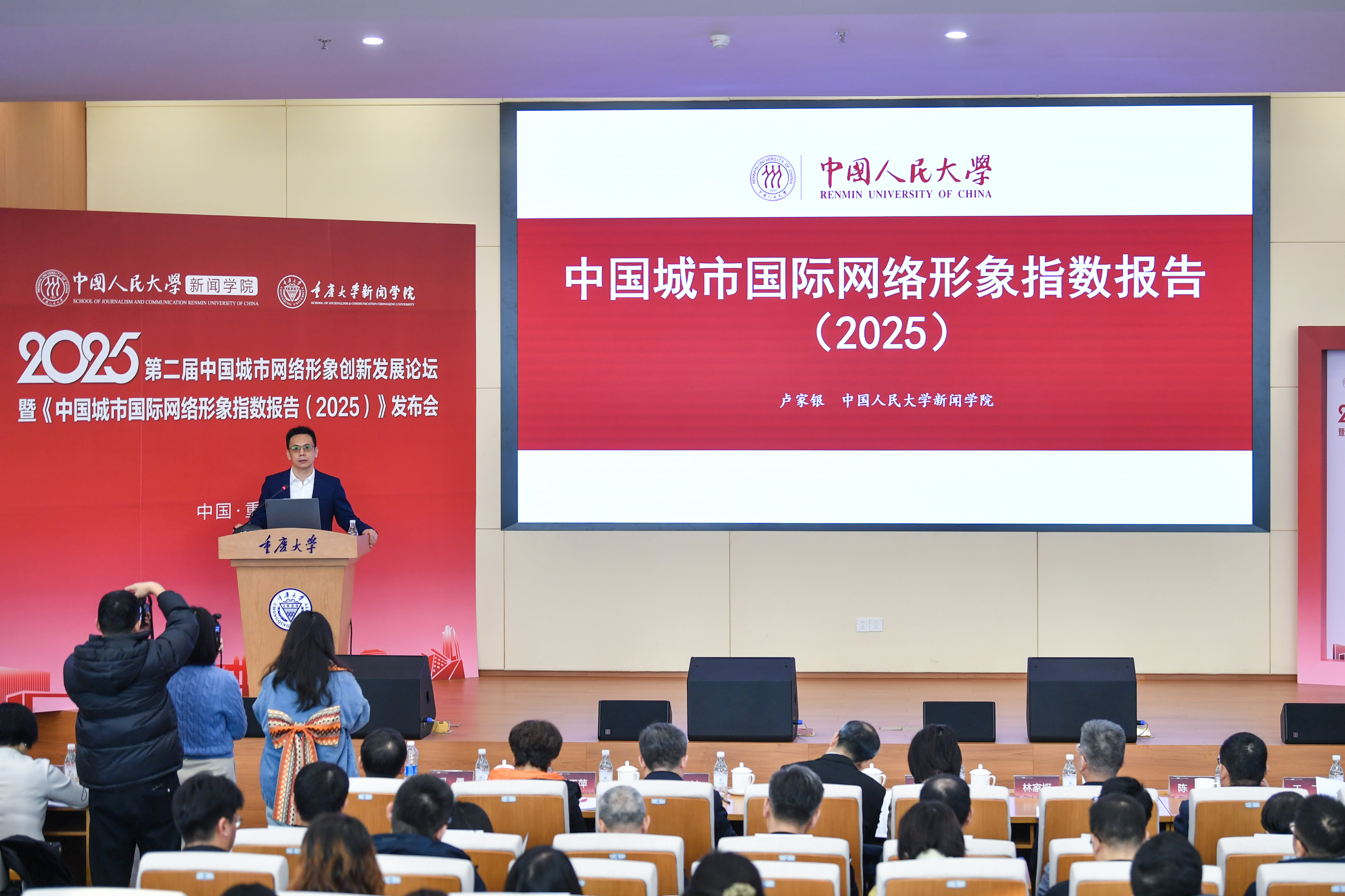 据了解,本次发布的两份报告由中国人民大学新闻学院与重庆大学新闻学院牵头,联合中国传媒大学、中山大学等多所高校共同编撰完成。 中国人民大学新闻学院院长周勇教授介绍,两份报告首次构建了涵盖“国际传播力、国际影响力与国际认同力”三大维度的系统性评估框架。基于该框架,报告对全国106座主要城市进行了具体测度与排名,并公布了各维度下的优秀案例城市。