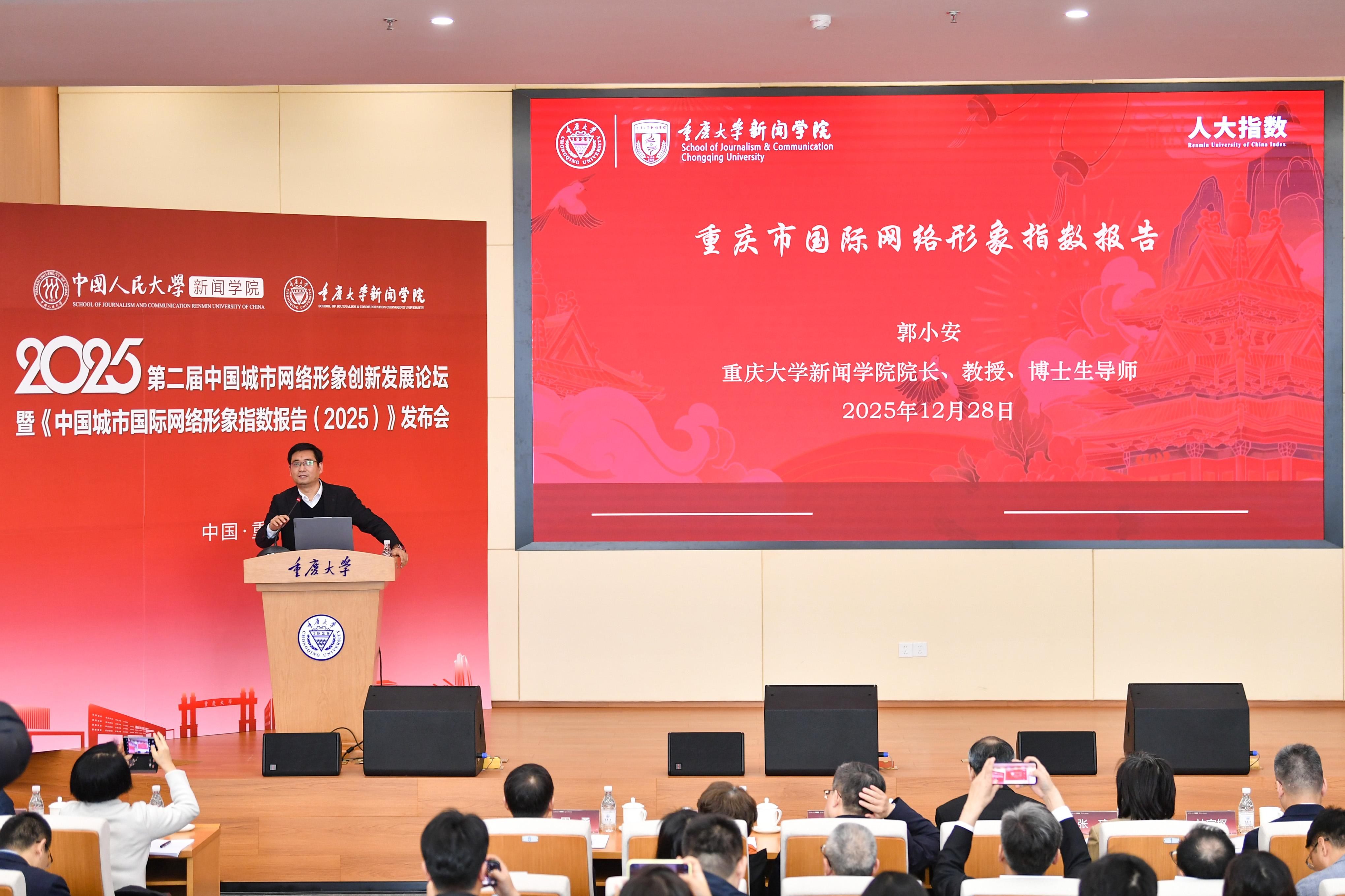 12月28日,在重庆大学举行的“第二届中国城市网络形象创新发展论坛”上,同步发布《中国城市国际网络形象指数报告(2025)》《重庆市国际网络形象指数报告(2025)》。北京、上海、深圳、重庆等20座城市位列中国城市国际网络形象第一方阵。重庆凭借鲜明独特的形象标签,在中国城市国际网络形象指标体系中脱颖而出,成为“特色突破”发展模式的典型代表。
