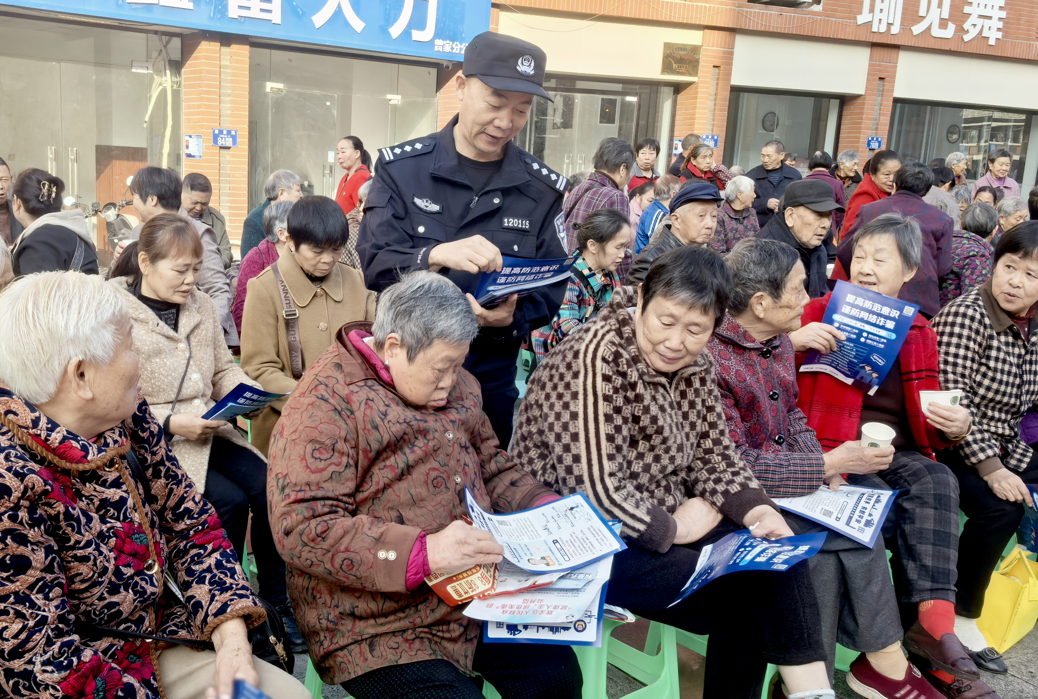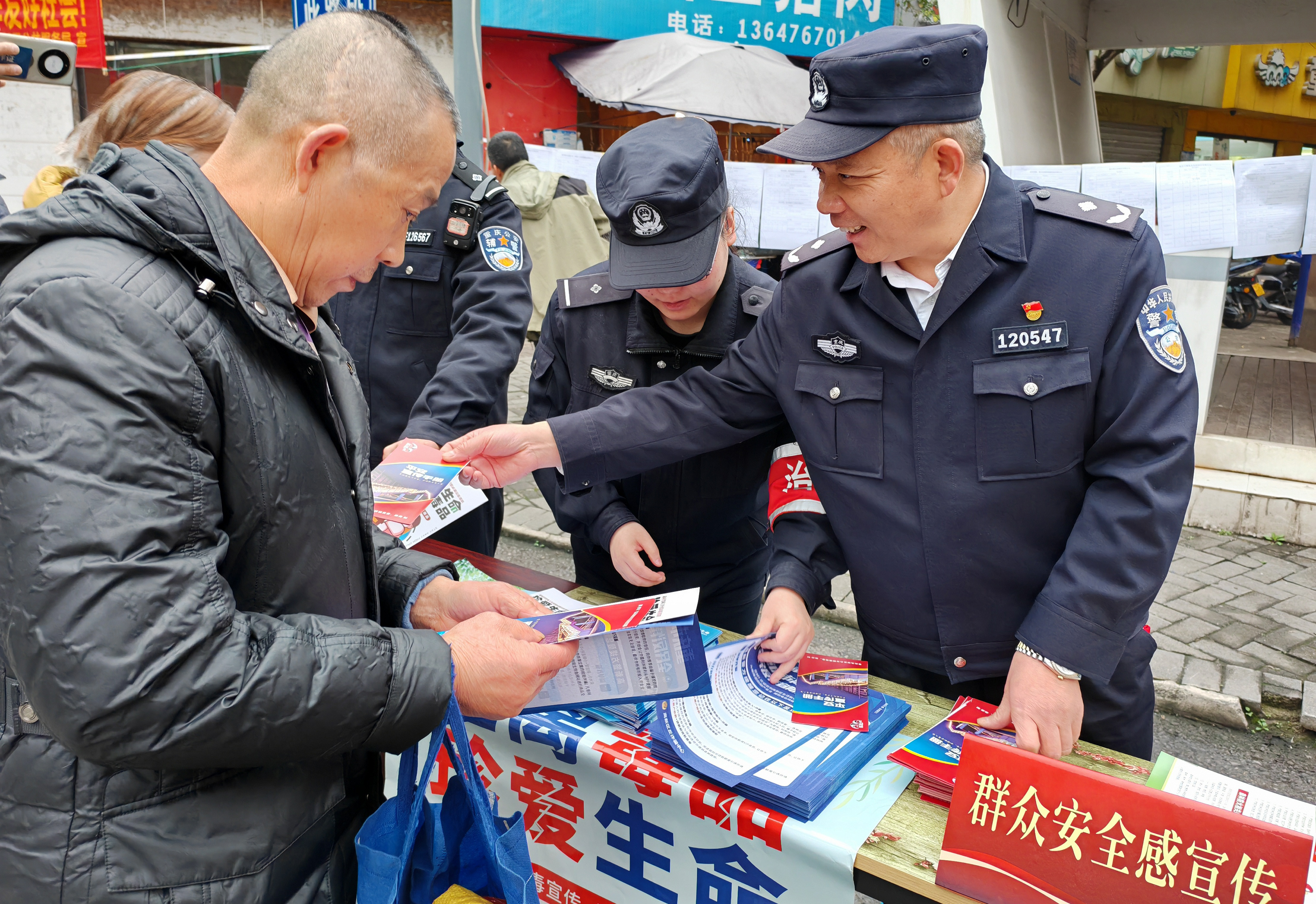 ▲白市驿派出所民警在辖区开展宣传活动 社区街道“全覆盖” 织密民生安全网 白市驿派出所联合白市驿镇人民政府走进驿站社区,将防盗、防火、防诈骗等安全知识集中传递给辖区群众。民警结合岁末年初盗窃案件高发的特点,提醒居民不要存放大量现金和贵重物品、关好门窗。