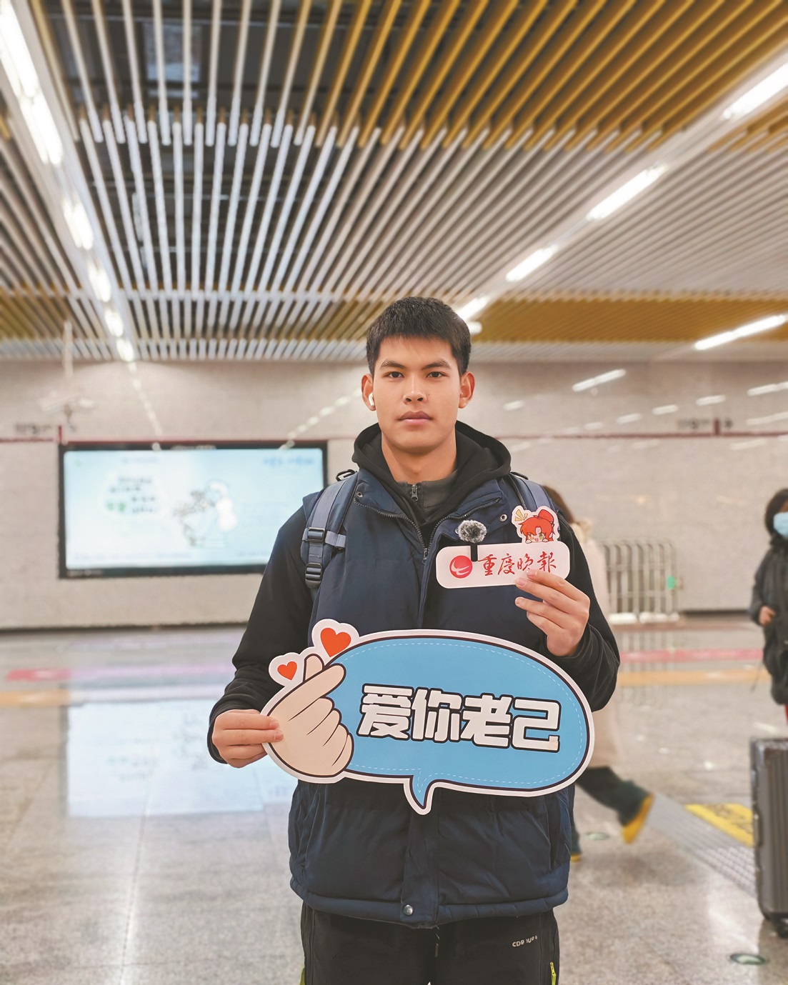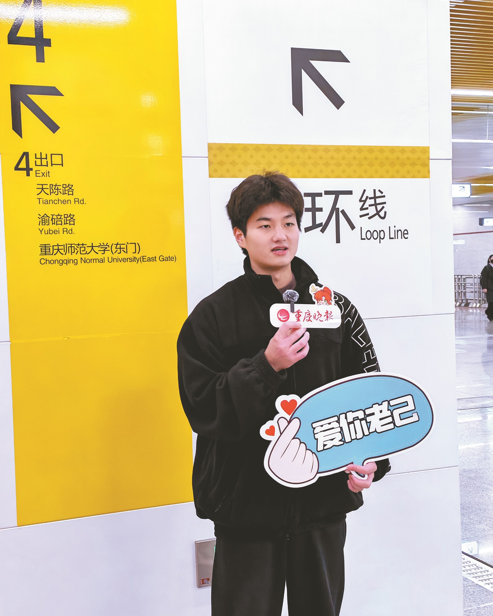 “爱你老己,明天见”——这句风靡网络的“爱自己”宣言,被誉为“今年最暖心的梗”。它之所以动人,正因为它把抽象的“爱自己”,变成了一声具体而亲切的招呼。 如今,这句从网络蔓延开来的温柔暗号,真实走进山城的轨道空间,落地为一段段说给未来的真心话。12月25日至26日,重庆晚报记者在轨道交通重庆北站南广场站与沙坪坝站,记录下20位年轻人对2026年自己的寄语。 从28岁小伙“平平安安、顺顺利利”的踏实期盼,到准妈妈对健康与新生儿的双重期许,再到应届毕业生“考上研、过自己想过的生活”的奋力呐喊。从程序员“活得理直气壮”的率性主张,到医学生“心头安逸、勿骄勿躁”的自我宽慰,再到大学生送自己“明年绝不熬夜”这份新年礼物……每一句“老己”,都是一次与自我的深情对话,一次对内心需求的郑重对待。 我们呈现这些声音,不仅是一场记录,更是一份邀请:邀请每一个在人生轨道上奔忙的你,也停下来,听听自己内心的声音。善待自己,并非纵容,而是如善待一位老友般,给予理解、陪伴与信心。 新年将至,愿你也能像对待一位老朋友那样,对属于自己的2026年说:该停就停,想笑就笑,把日子过成自己喜欢的模样。 爱老己,就是爱这具体而真实的人生。祝你新年,从“爱你老己”开始。 20位年轻人隔空喊话2026年的自己