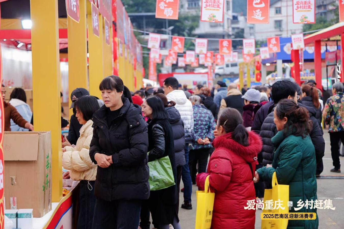 本次消费季紧抓年末迎新节点,以“冬日到巴南,赶集泡温泉”为核心体验,不仅为市民提供了购土货、品年味、泡温泉的一站式休闲选择,更通过搭建直销平台、促进文旅融合,切实拓宽了农民增收渠道,提升了东温泉镇的区域品牌影响力,为乡村消费扩容提质提供了“巴南样本”。 多维场景聚人气,直接销售成果显著 活动通过精心规划的多元消费场景,成功集聚了旺盛人气,在充满年味的“土货大集”“喜乐年货集”中尽情选购。数据显示,活动现场直接产生的销售额超50万元。其中,由本土农民直销的“乡村土货坊”与汇聚重庆特色产品的“乡野好物集”备受青睐,实现了农产品从田间到餐桌的高效对接,让农民实实在在享受到了消费活动的红利。 “团圆村宴”与“年猪宴”等特色餐饮体验,不仅唤醒了市民的传统年味记忆,更直接拉动了餐饮消费。活动现场的宴席展示、美食品尝与民俗活动,有效预热了春节餐饮市场,为参与商家带来了可观的关注度和预订意向。