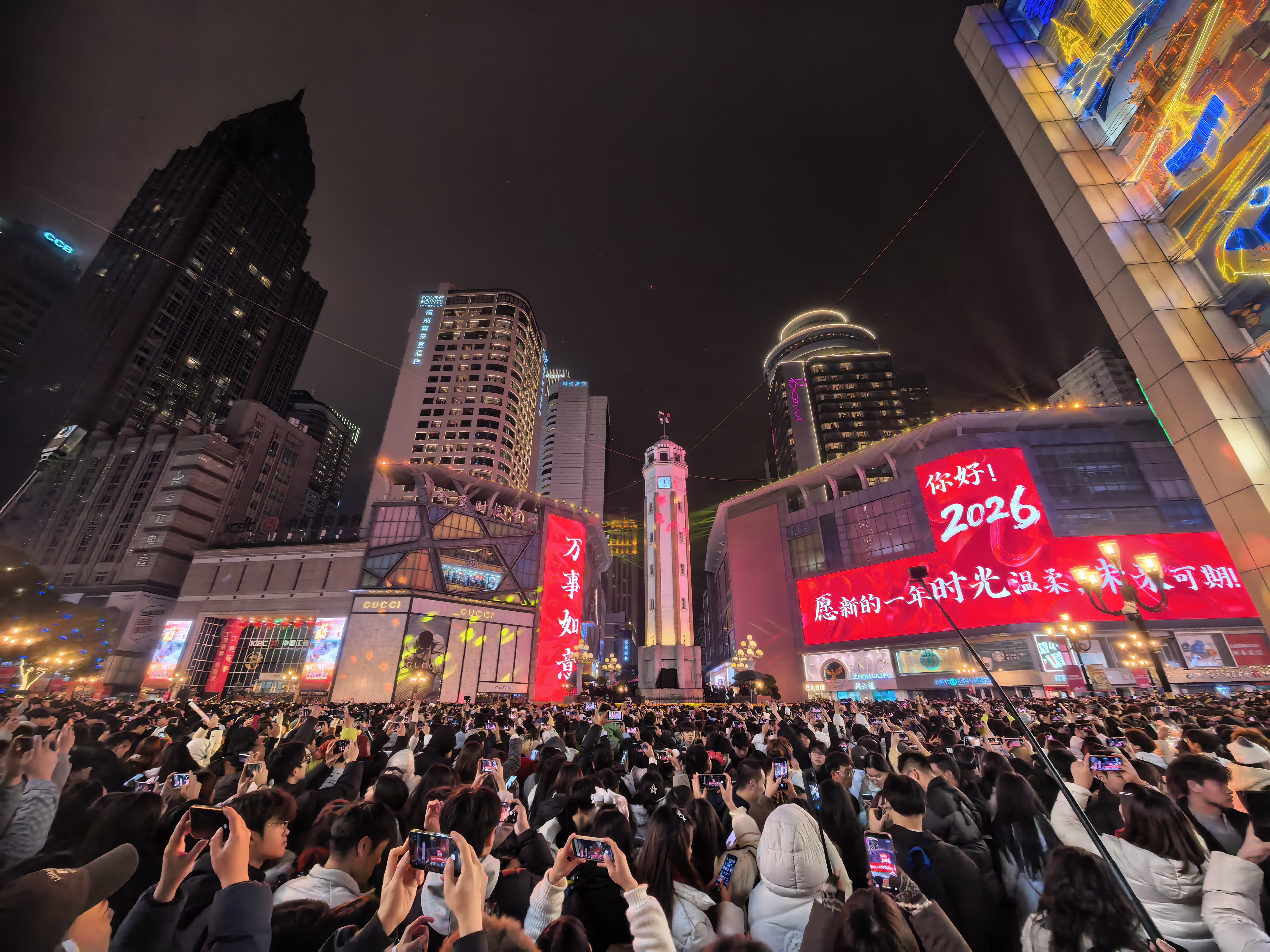 ▲2026年1月1日,渝中区解放碑步行街,市民、游客欢聚一堂,共同迎接新年的到来。记者 尹诗语 摄