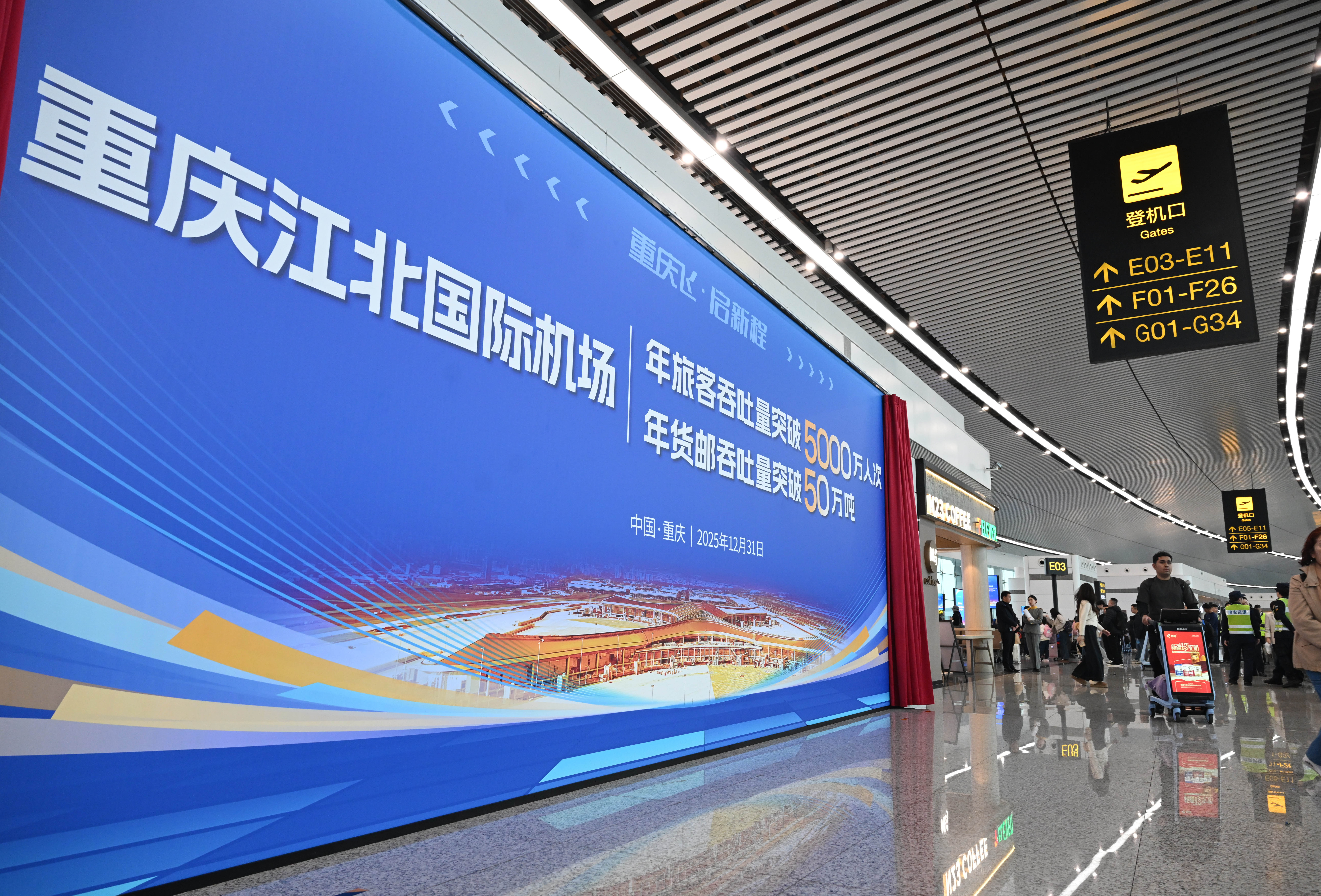 ▲2025年12月31日,重庆江北国际机场T3A航站楼内,候机旅客收到旅客吞吐量首次突破5000万人次纪念登机牌。 记者 罗斌 摄/视觉重庆 作为中西部首个实现四条跑道同步运行的机场,江北国际机场2025年完成“3座航站楼+ 1座卫星厅+ 4条跑道”全新运行格局,为实现客货双突破发挥了重要支撑。 2024年12月26日,重庆江北国际机场第四跑道投用,让机场保障能力与效率实现质的飞跃。2025年4月9日,T3B航站楼正式投用。至此,江北国际机场航站楼总面积突破百万平方米,终端保障能力达年旅客8000万人次、货邮120万吨、飞机起降58万架次。 与此同时,旅客服务持续升级。“因为工作需要,我常年要坐飞机出差,这些年感受最明显的,就是江北机场变得越来越便捷了。”2025年12月31日下午,即将搭乘航班飞往珠海的旅客朱瑜向记者感慨道。在她看来,重庆机场的现代化程度很高,从值机、安检到登机,整个流程都高效顺畅。“尤其是连接T3A和T3B航站楼的小火车,大大节省了换乘时间,体验感特别好。”