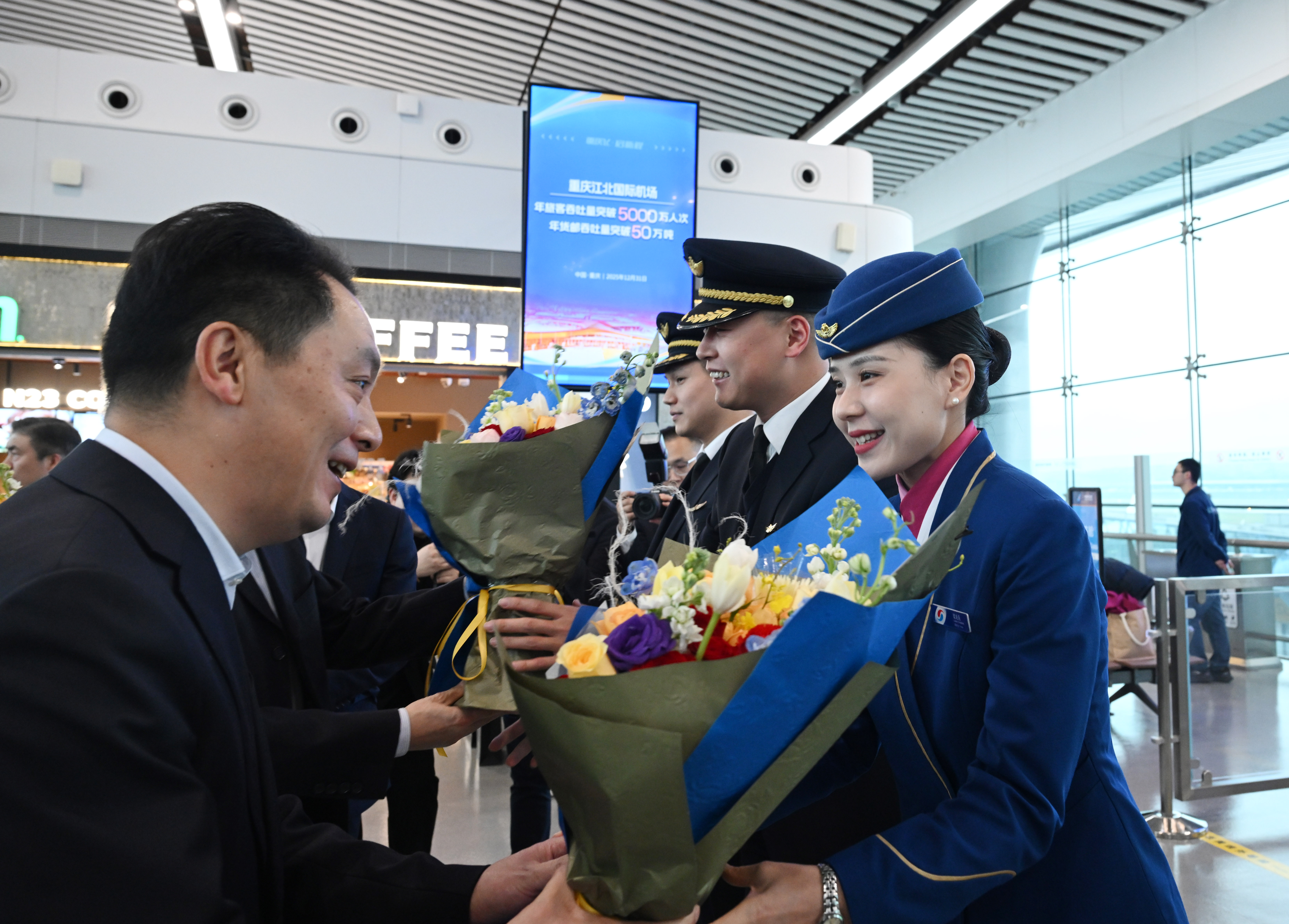 ▲2025年12月31日,重庆江北国际机场T3A航站楼内,航空公司的乘务员收到鲜花。 记者 罗斌 摄/视觉重庆 该负责人介绍,今年以来,重庆江北国际机场锚定欧洲、东南亚两大核心发展区域,充分依托重庆区位优势,持续织密货运航线网络,陆续新开或加密重庆至伯恩茅斯、米兰、河内、曼谷、达卡、仰光、法兰克福、阿姆斯特丹及中国香港9条国际(地区)货运航线。 目前,江北国际机场联合多家航司新开国际货运航线,每周达66班;12月单周国际货邮吞吐量首破6000吨,“重庆-仰光”航线实现“当日往返”,打通东南亚货运通道。 值得关注的是,货邮品类聚焦高附加值电子信息产品、新能源汽车产业链、先进材料等,覆盖跨境电商、冷链生鲜,精准对接重庆“33618”现代制造业集群,形成“产业赋能物流、物流支撑产业”的协同格局,为“416”科技创新布局提供物流保障。 最新数据显示,截至2025年11月,重庆江北国际机场国际空空中转货量已达8840吨,较去年同期实现78%的增长。 “流量”驱动 撬动临空经济新动能 运输生产量持续突破的背后,是重庆机场主动融入国家战略、服务区域发展的担当,其枢纽价值正不断转化为发展动能,为产业协同、文旅融合提供高效航空保障。