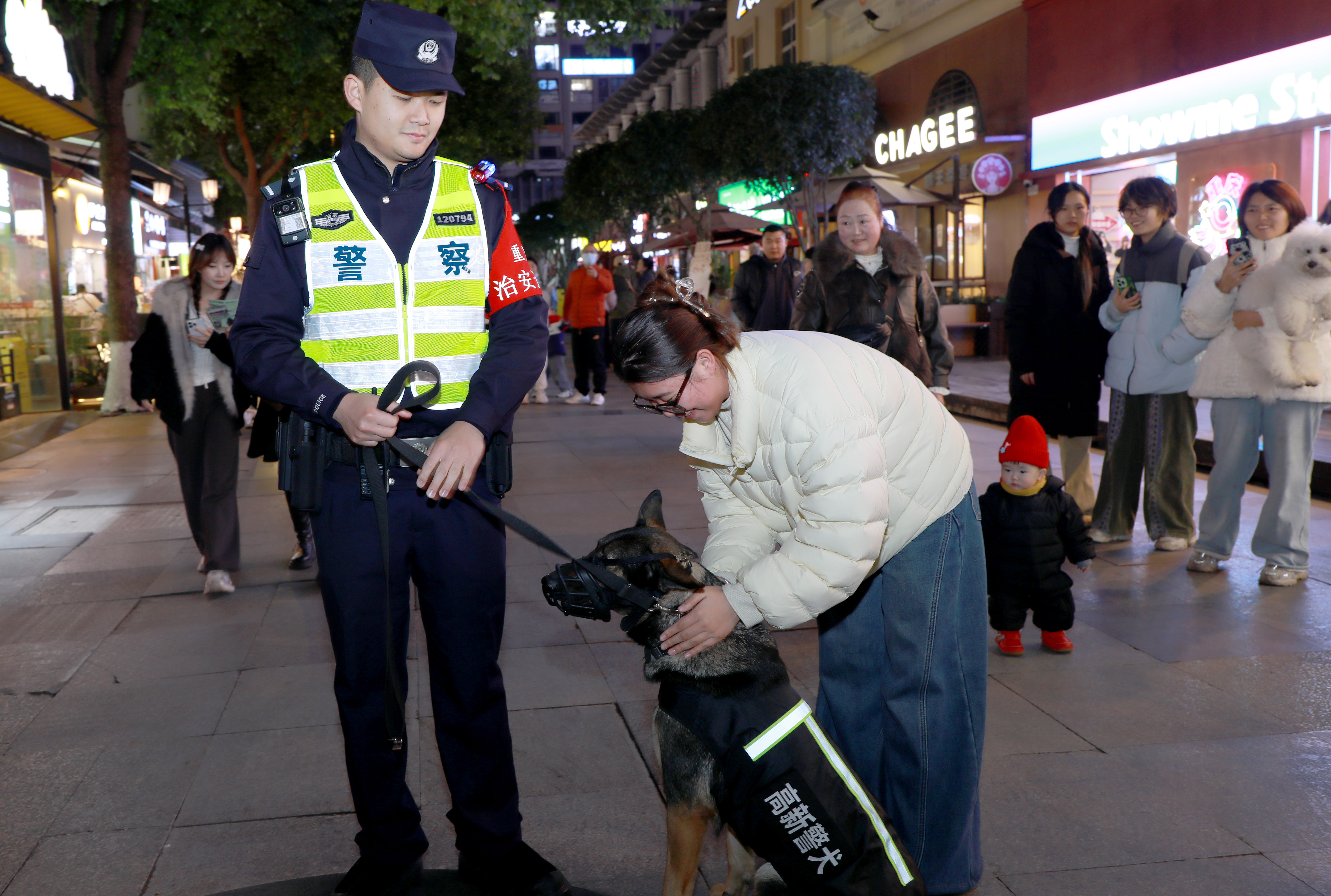 ▲警犬受到群众的喜爱 为全面强化社会面管控,高新区公安采取“车巡+步巡+空巡”相结合的方式,大幅提高见警率和管事率。节前,警方提前对全区100多家娱乐场所、3处商业街区逐一落实管控措施;节日期间,民警深入各场所开展多轮次突击检查,重点排查消防安全、应急预案落实等情况。