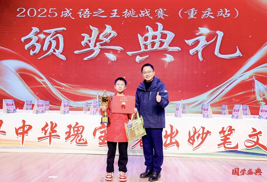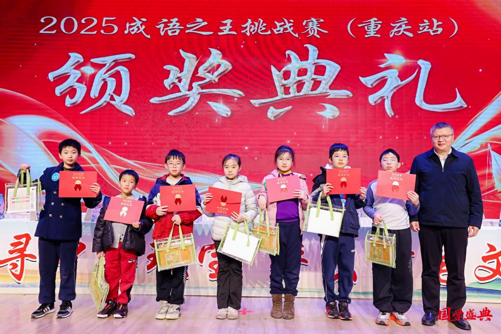 ▲2025“成语之王”挑战赛活动现场 在热烈掌声中,2025“成语之王”挑战赛正式开启。从前期全国几百所学校参与者中脱颖而出的佼佼者们,在赛场上沉着应对,机智应答,充分展现了丰厚的国学积累、敏捷的思维和良好的心理素质,完美诠释了“腹有诗书气自华”的当代少年风采。 经过紧张激烈的比拼,最终赛果揭晓:任昱龙(重庆市江北巴川量子学校五年级2班)夺得冠军,加冕“成语之王”。曹心怡(重庆市江北巴川量子学校五年级9班)、李依娜(重庆市江北巴川量子学校五年级3班)、彭梓朔(恩施土家族苗族自治州清江外国语学校六年级5班)、曾品嘉(重庆市巴蜀小学校五年级3班)获得亚军。高悍程(重庆市江北巴川量子学校四年级3班)、陈柏翰(重庆市南岸区珊瑚实验小学三年级6班)、邵月恒(重庆市两江新区五里店小学校五年级3班)获得季军。