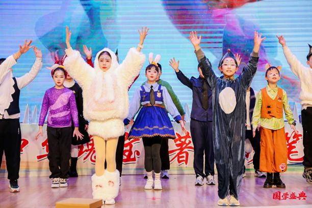 ▲巴川量子学校同学们活力十足的现场表演 活动在巴川量子学校同学们充满活力的表演中拉开序幕。歌曲串烧《UP! 我的K12》与英语情景剧《疯狂动物城2》先后上演,展现了新时代青少年开放、自信的精神风貌,也为即将开始的成语对决铺垫了跨越古今、联接中外的氛围。