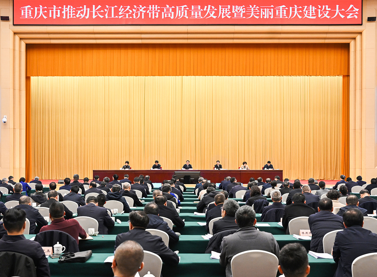 ▲1月5日上午,重庆市推动长江经济带高质量发展暨美丽重庆建设大会召开。记者 苏思 摄/视觉重庆 袁家军在重庆市推动长江经济带高质量发展暨美丽重庆建设大会上强调 牢记殷殷嘱托 发挥示范作用 奋力开创长江经济带高质量发展和美丽重庆建设新局面 胡衡华主持 王炯程丽华郭芳出席 1月5日上午,重庆市推动长江经济带高质量发展暨美丽重庆建设大会召开。市委书记袁家军出席会议并讲话。他强调,要全面落实党的二十大和二十届历次全会精神,深学笃行习近平生态文明思想,紧扣做实“两大定位”、发挥“三个作用”,牢固树立和践行“两山”理念,坚持共抓大保护、不搞大开发,坚持生态优先、绿色发展,突出数智赋能和改革创新双轮驱动,突出协同推进降碳、减污、扩绿、增长,更好统筹高水平保护和高质量发展、高品质生活、高效能治理,加快省域美丽中国先行区建设,进一步在推进长江经济带绿色发展中发挥示范作用,为奋力谱写中国式现代化重庆篇章提供有力支撑。 市委副书记、市长胡衡华主持,市人大常委会主任王炯,市政协主席程丽华出席,生态环境部副部长郭芳讲话,市委副书记、常务副市长陈新武,市委常委,有关市级领导出席。 会议听取重庆市统筹实施长江经济带发展战略10年来工作成效、统筹推进美丽中国先行区建设工作成效及“十五五”工作思路汇报,市交通运输委、涪陵区、奉节县草堂镇欧营村负责人作交流发言。 十年来特别是党的二十大以来,全市上下坚决扛起筑牢长江上游重要生态屏障重大政治责任,着眼以重庆一域更好服务全国生态文明建设大局,突出强化党建统领,统筹落实大保护、大开放、高质量发展新要求,系统构建美丽重庆建设“四梁八柱”,建立健全以治水治气治废为牵引的“九治”生态治理体系,扎实推动污染防治攻坚实现突破性进展,生态保护修复取得明显成效,城乡风貌整体大美格局持续呈现,绿色低碳转型迈出坚实步伐,全域生态治理能力持续提升,区域生态协同共治形成新格局。 袁家军在讲话中指出,“十五五”时期是巩固长江经济带发展战略实施成果、推动美丽重庆再上新台阶的关键阶段。全市上下要坚持以习近平生态文明思想武装头脑、指导实践、推动工作,找准发力点实现系统治理、源头治理、专项治理,坚持以高水平保护支撑高质量发展,深入践行以人民为中心的发展思想,注重深化改革构建长效机制,加强基层党建、动员全社会参与共治,以实干实绩实效持续筑牢现代化新重庆建设绿色本底,进一步在推进长江经济带绿色发展中发挥示范作用,为美丽中国建设探索经验模式、提供标杆样板。 袁家军强调—— ●要全面巩固拓展治水治气治废攻坚成果,强化源头治理持续提升全域水质,完善精准溯源、区域联防联控、应急响应的治气机制,突出无害化、资源化和风险精准防控推进治土治废治塑,提质建设全域“无废城市”。 ●要持续深化推进生态系统一体化保护修复,守牢国土空间开发保护底线,不断提升国家重点生态功能区保护质效,统筹保护、修复、管控一体深化治山治岸,加强三峡库区危岩地灾治理项目后期管护,持续巩固长江十年禁渔成果,进一步完善生物多样性保护网络。 ●要加快塑造提升山水都市整体大美新风貌,聚焦功能风貌一体提升和投建运全生命周期管理完善治城体系,特色化打造美丽区县城和小城镇,突出提升环境整治、风貌改善、功能优化等质效纵深推进治乡,加快构建符合巴渝山水特质、彰显特色的乡村风貌治理体系,共同维护宜居宜游高品质乡村空间。 ●要坚决落实碳排放双控推进全面绿色转型,构建市场导向的绿色技术创新体系,壮大低空经济、人工智能等绿色动能新增长点,提速构建新型能源体系,大力促进城市运行节能降碳,发展绿色生产力。 ●要聚力打造超大城市生态治理标志性成果,持续完善市域生态治理闭环体系,严格执行党政领导干部生态环境保护责任制规定,健全河长林长履职体系,加大力度深化资源环境要素市场化配置改革,迭代完善数字生态环保体系构架,牢牢守住不发生重特大突发环境事件底线。 ●要集成放大枢纽功能形成联动发展合力,突出区域协同细化谋划省域美丽中国先行区建设,健全区域生态协同共治体系,共同保护传承弘扬长江文化,联动推进长江国家文化公园、长江三峡国家考古遗址公园、国家级文化生态保护区建设,持续提升与共建“一带一路”、西部陆海新通道联动发展效能,服务支撑陆海联动高水平开放。 袁家军强调,推动长江经济带高质量发展和美丽重庆建设关键在加强党的全面领导。要坚持全市“一盘棋”,进一步加强工作统筹,压实属地属事责任,凝聚齐抓共管合力,确保各项任务一贯到底,全面筑牢长江上游重要生态屏障,不断打造美丽重庆建设标志性成果,为美丽中国建设作出积极贡献。 郭芳说,2016年,习近平总书记提出长江经济带“共抓大保护、不搞大开发”重要理念。十年来,生态环境部与沿江11省市、相关部门密切配合、协同发力,推动长江生态环境保护发生转折性变化,成为大江大河保护治理的典范。长江大保护是一场攻坚战,也是一场持久战。生态环境部与长江经济带各省市将始终坚持以习近平新时代中国特色社会主义思想为指导,全面贯彻党的二十大和二十届历次全会精神,认真落实习近平总书记关于加强
