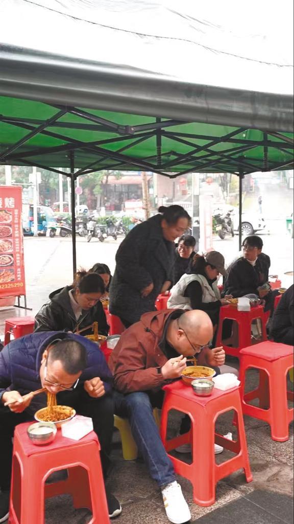 ▲下雨天,新店人气依然很旺。 网红时代的坚守者 赵伍面庄的豌杂面曾登上美食纪录片《早餐中国》,让这家老字号面庄变成了“网红明星”。节目播出后,面馆门口排起了更长的队伍,许多年轻人慕名而来。 然而,面对骤来的名气,赵伍父子显示出一种老派手艺人的定力。不做加盟,不做推广,专注做好眼前这一碗面。这些年来,无数加盟的请求被他们婉拒,他们的时间与精力,几乎全部倾注在如何甄选更优质的调料上,以及日复一日对店铺踏实的经营上。 轨道边开新店的理由 对于为什么突然开新店,小赵的理由朴实而真切:“老店人气旺,但地方窄,交通不太便利,停车也难。开这家新店,就是想让更多喜欢我们味道的顾客,能更方便地吃上一碗。” 新店选址在轨道交通环线、4号线民安大道站附近,步行仅需几分钟。这一改变让许多老顾客感到欣喜。“我刚从南京出差回来,立刻跑来吃碗重庆小面。”一位小伙在店里一边吃面一边感慨。 小赵的女儿妍妍妹今年12岁,周末常到店里帮忙端面。她尤其爱吃爸爸煮的面,那麻辣鲜香的味道早已融入她的成长记忆。“以后这家店就由你继续发扬光大!”是赵家人时常给妍妍妹半开玩笑的叮嘱。一碗小面,传承的基因,在这个小小的面馆里静静流淌。 小赵的梦想简单而真挚:“把‘赵伍’这块牌子一直发扬下去,让我父亲的辛苦更值得,他这辈子真的很不容易,值得敬佩。” 小赵的妻子黄女士作为“85后”,与丈夫理念相通,日日同在店中忙碌。这个小小的家庭,因这一碗面而紧密联结,也因这碗面,找到了与更广阔世界连接的窗口。 重庆晚报-厢遇首席记者 王薇/文 记者 蹇汶佑/摄 编辑:戴林 校审:罗再芳 总值班:周圆 |