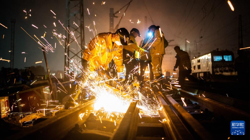 ▲铁路工人在西部陆海新通道的铁路轨道上更换钢轨(2023年4月12日摄)。记者 张爱林 摄/新华社