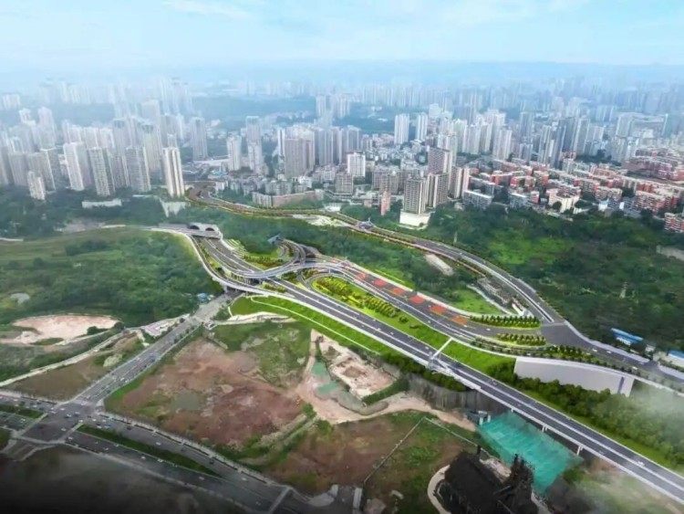 ▲八横线白市驿隧道至黄桷坪长江大桥段效果图。 主要工程包括九宫庙隧道,黄桷坪隧道,2处连接线隧道(双山连接线隧道1.23公里、锦龙路接线隧道0.49公里),1座互通立交(重钢立交)及钢花路连接线。 该项目穿越大渡口等多个片区,是横贯重庆快速通道的重要组成部分,也是永川区、璧山区及四川省泸州市等地的直接入城通道。项目建成后,为完善中心城区中部骨架路网结构提供了更为完善的交通基础设施条件,极大地推动区域的快速发展,四横线交通也将实现显著分流。 鱼洞长江大桥南桥头立交 鱼洞长江大桥南桥头立交为三纵线与大江中大道延长段形成的全互通立交,旨在缓解三纵线与箭竹路立交拥堵、提高莲花片区出行效率、完善三纵线道路功能。