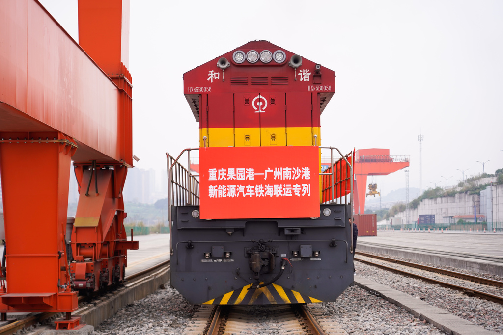 1月7日,随着汽笛鸣响,一列满载有108台“重庆造”新能源汽车的铁海联运专列,从重庆果园港鱼嘴站发出,预计在48小时后抵达广州南沙港,随后换装海轮运往中东市场。