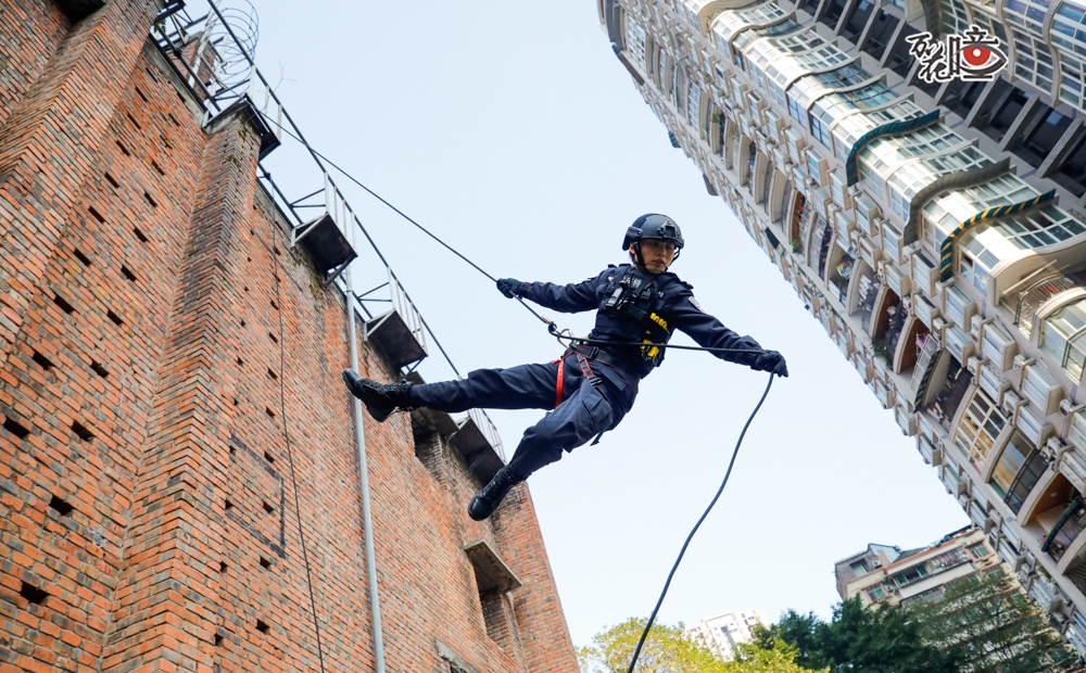 索降在一些突击任务中非常实用,队员刘星的索降是警队一绝,在2024年川渝女子特警直播演训中,她从高空飞速下滑,身姿轻盈,控制精准,稳稳落在地面,整个过程一气呵成,被网友称为“天外飞仙”。“练习索降,既要克服从高处往下跃的心理障碍,还要忍受手脚被反复磨破的痛楚,但只要能掌握这项技能,就不觉得辛苦了。”刘星笑着说。