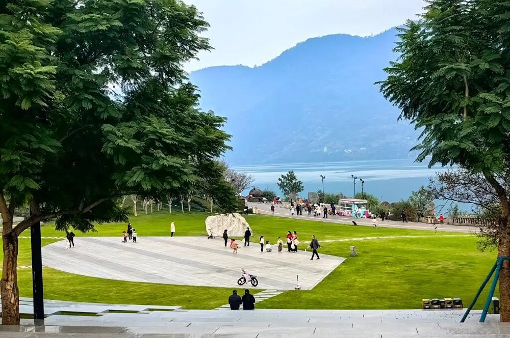 ▲2025年11月23日,海外华文媒体采访团参观重庆市云阳县环湖绿道。记者 吴梦桐 摄/新华社