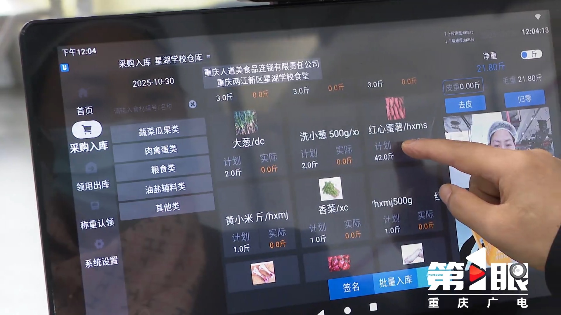在重庆,“人工智能+”加出了什么?AI+民生福祉,“校园餐智管”系统守护舌尖上的安全:食材通过智能秤验收入库,AI自动识别食材品质,电子防线能预警保质期;