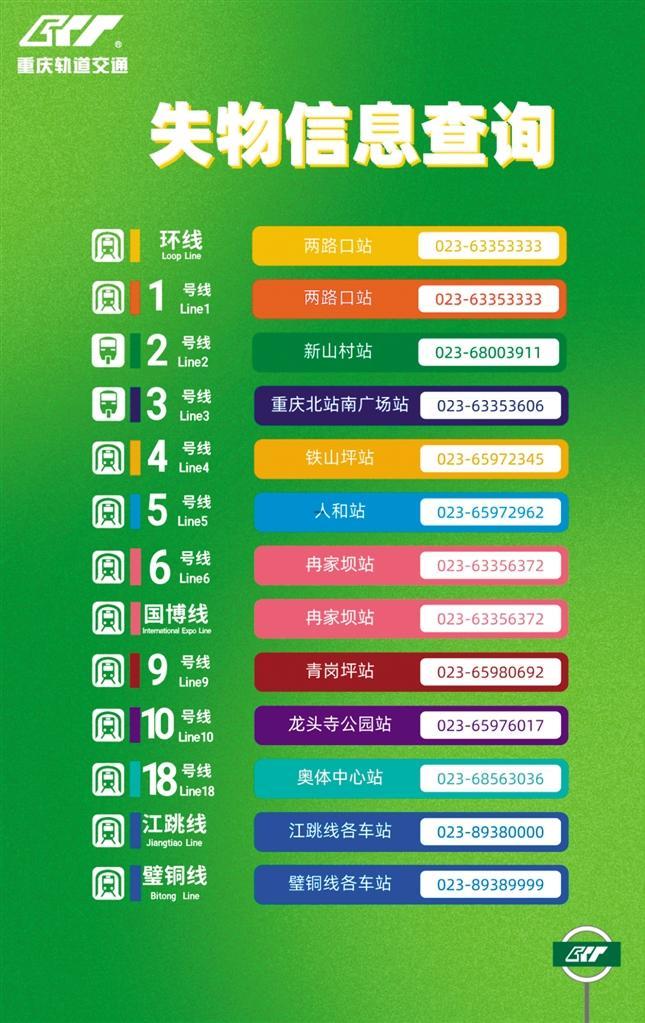 ■可爱担当:玩具、儿童游泳浮背 失物架上也不乏“可爱担当”,让人忍不住会心一笑。小黄人玩具、儿童游泳浮背满是童趣,想必是小朋友被窗外风景吸引,或是跟着家长匆匆下车时,不小心把“玩伴”们留在了车上。 温馨提示 丢失物品可这样找回 重庆交通开投集团轨道运营公司表示,每一件失物都会被工作人员仔细登记、妥善保管,等待失主前来领。若不小心丢失物品,可及时拨打重庆轨道交通各线路失物查询电话,或通过“重庆轨道交通”官方微博、微信公众号、官方网站及“渝畅行”APP查看失物招领信息。