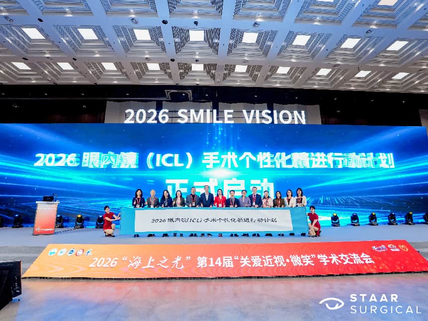 2026年1月8-10日,2026“海上之光”眼视光学与视觉科学学术会议、2026视觉科学技术及设备展览会暨第十四届“关爱近视·微笑”学术交流会在上海西岸国际会展中心顺利召开。本次大会由中国民族卫生协会、北京医学科学健康学会主办,中国民族卫生协会眼学科分会、复旦大学附属眼耳鼻喉科医院、上海市眼视光学研究中心联合承办,是国内眼视光领域极具影响力的学术盛会,吸引了国内外顶尖眼科专家、学者齐聚一堂,共探行业发展新趋势。爱尔眼科重庆特区副总CEO、爱尔眼科重庆总院(大坪院区)-重庆眼视光眼科医院CEO周奇志教授受邀担任多项重要学术环节的主持、评委及演讲嘉宾,全程深度参与学术评审与研讨,分享临床实践成果与行业发展洞见,展现了重庆爱尔眼科在行业领域的学术实力。 引领ICL技术发展,从精准规划到创新应用 周奇志教授率先亮相2026眼内镜(ICL)手术个性化精进行动计划启动仪式,与复旦大学附属眼耳鼻喉科医院周行涛教授、中山大学中山眼科中心余克明教授、首都医科大学附属北京同仁医院熊瑛教授等国内眼科专家共同启动该计划,为推动ICL手术的个性化、精准化发展奠定基础。