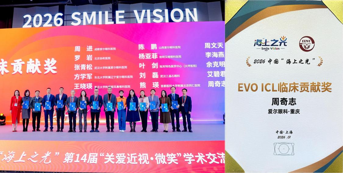 重庆眼视光眼科医院屈光手术专科高阳主任讲解《重庆省区共享经济实践经验》 1月11日,在爱尔眼科医院集团内部举办的 “SMILE pro专场研讨会” 上,周奇志教授再次带来《重庆省区共享经济实践经验》的主题分享。由于参加学术会时间的冲突,这一主题由重庆眼视光眼科医院屈光手术专科高阳副主任讲解。他系统介绍了在新形势下医疗资源整合、技术协同共享、人才联动及服务模式创新方面的探索与成果,针对全飞秒SMILE pro不断练内功、修外功,其总结的“资源共享、优势互补、协同发展”模式,为推动区域眼科专项医疗服务标准化、高效化发展提供了宝贵经验,为集团内各医院实现协同发展、提升整体服务效能贡献了宝贵的“重庆经验”。 荣誉奠基,彰显临床科研硬实力 值得一提的是,作为已经成功实施了超15000例ICL手术的专家,周奇志教授早在2025年12月10日,就实施了全国首批EVO+ ICL (V5) 晶体植入手术,对于EVO+ ICL (V5) 晶体也给予了高度的评价,眼内镜ICL手术是不切削角膜组织的“加法”摘镜手术,30年来,其产品不断迭代,EVO+ ICL (V5) 在EVO ICL (V4c) 的基础上优化了光学区设计,可显著减少夜间视觉干扰,提升暗光环境下的视觉质量和安全性,开启全天候高清视觉体验。