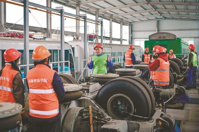 沙盘上的“列车”模拟跨线运营 重庆晚报记者看到,这间实训室内,城轨调度系统屏、城轨运营线路沙盘、车站运行控制终端系统等一应俱全,通过真实模拟、情景教学的方式,还原重庆轨道交通互联互通技术的运行模式。 其中,正中央的城轨运营线路沙盘尤为亮眼,19座模拟车站错落分布,车辆段内4条存车线、2条检修线、1条洗车线、1条试车线清晰划分,真实模拟轨道交通运营场景。 “每台电脑对应一个真实车站,在这里,学生既能当中心调度员统筹全局,又能做车站值班员坐镇一线。”胡兴丽指着操作台说,学生们在这里绘制运行图、调度列车、处置信号故障,沉浸式学习轨道交通运营的全流程。 实训场即赛场 0.02毫米误差打磨“匠心” 精湛的技能,来自千锤百炼。在铁道交通运营管理专业的实训场上,学生正练习调车作业中摘接软管的关键操作。“动作慢一秒,可能影响整个站场的效率!”教师胡迦沛强调。学生冯泽林和罗永涛反复拆装,速度与规范性在一次次练习中提升。
