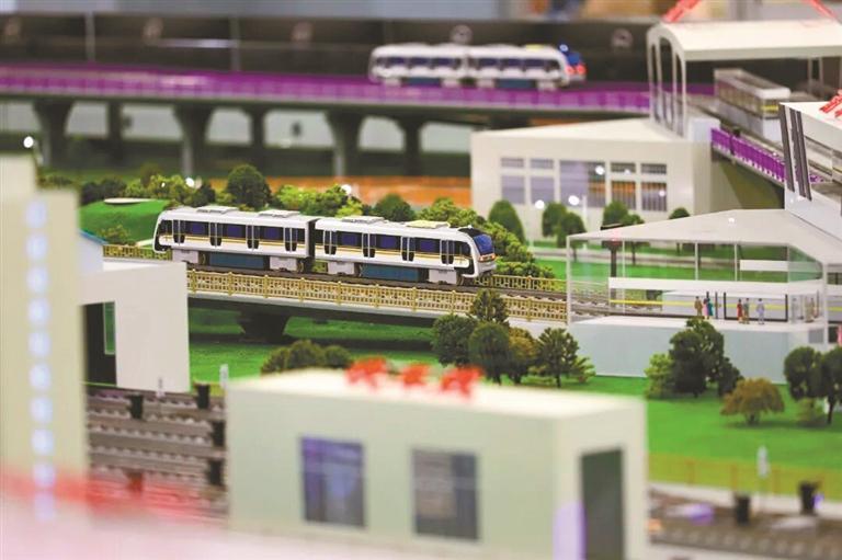 学生们学习跨座式单轨走行驱动装置系统的实际构造 在校园的另一侧,整合了干线铁路、城际铁路、市域(郊)铁路、城市轨道交通的“轨道交通多网融合实训基地”同样吸睛。实训基地内,陈列着“和谐号”动车组头车、25G铁路客车等,“我们建设这个实训基地的目的是让学生不用走出校门,就能一站式学遍不同轨道制式的运维与管理技能。”周宗明说道。 上课像上班 沙盘之上玩转“互联互通” “列车准备跨线运行!”城市轨道交通运营管理实训室里,该校交通运营教科研团队负责人胡兴丽的指令刚发出,学生们立刻在电脑前忙碌起来。不一会,一列地铁列车模型就在沙盘轨道上启动,自动根据编制好的运行图运行。 “现在列车正在进行的是模拟重庆轨道交通互联互通,列车从5号线快线驶入环线,再由环线跨线运行至4号线的全过程。”一名正在实训的城市轨道交通运营管理专业学生说,每当来到这个实训室上课就像是“上班”。