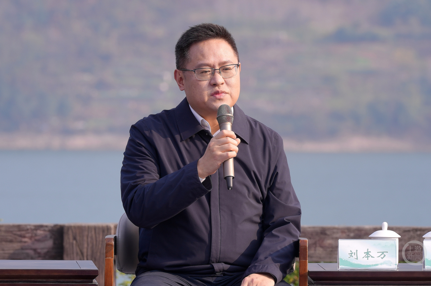 巫山县委书记刘本万介绍巫山绿色实践。 全力“守水” 把好出渝水质“最后一道关” 巫山搭建起“源头管、沿途治、岸线护”的立体保护网络,坚持从源头切断污染,整改67座小水电站、关停24个老旧码头、整治72个入河排污口,还有325条渔船全部退捕上岸。同时,组建专业的清漂队,用“围追堵截”的办法把江面上的漂浮物清理干净。 巫山还在农村开展了“垃圾、污水、厕所”三大革命,规范畜禽养殖,2019年以前就将红线内的养殖场全部关停,现在采用的是“种养结合、生态还田”模式,全县畜禽粪污资源化利用率达到了91%。长江干流巫山段水质连续9年保持在Ⅱ类水质,总磷浓度持续下降,全县15个考核断面、29个饮用水源地水质达标率都是100%。这些硬措施,守住了长江出渝水质的底线,昔日的“生产岸线”正转变为生机盎然的“生态岸线”“生活岸线”。