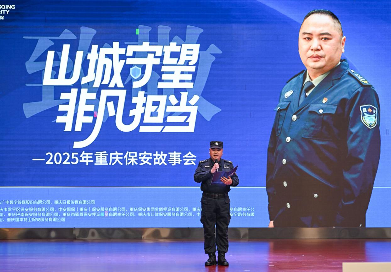 “我们希望借助故事会这个平台,向社会展现保安队伍的责任和担当,增进社会各界对保安行业的理解和支持,凝聚起共建共治共享安全韧性城市的强大合力。”现场,重庆安保集团有限责任公司董事长袁刚介绍,重庆约有36万名保安,他们扎根在基层一线,是城市服务的“第一触点”,他们的每一次耐心引导、每一次热心帮扶,都在传递着城市的温暖与善意。
