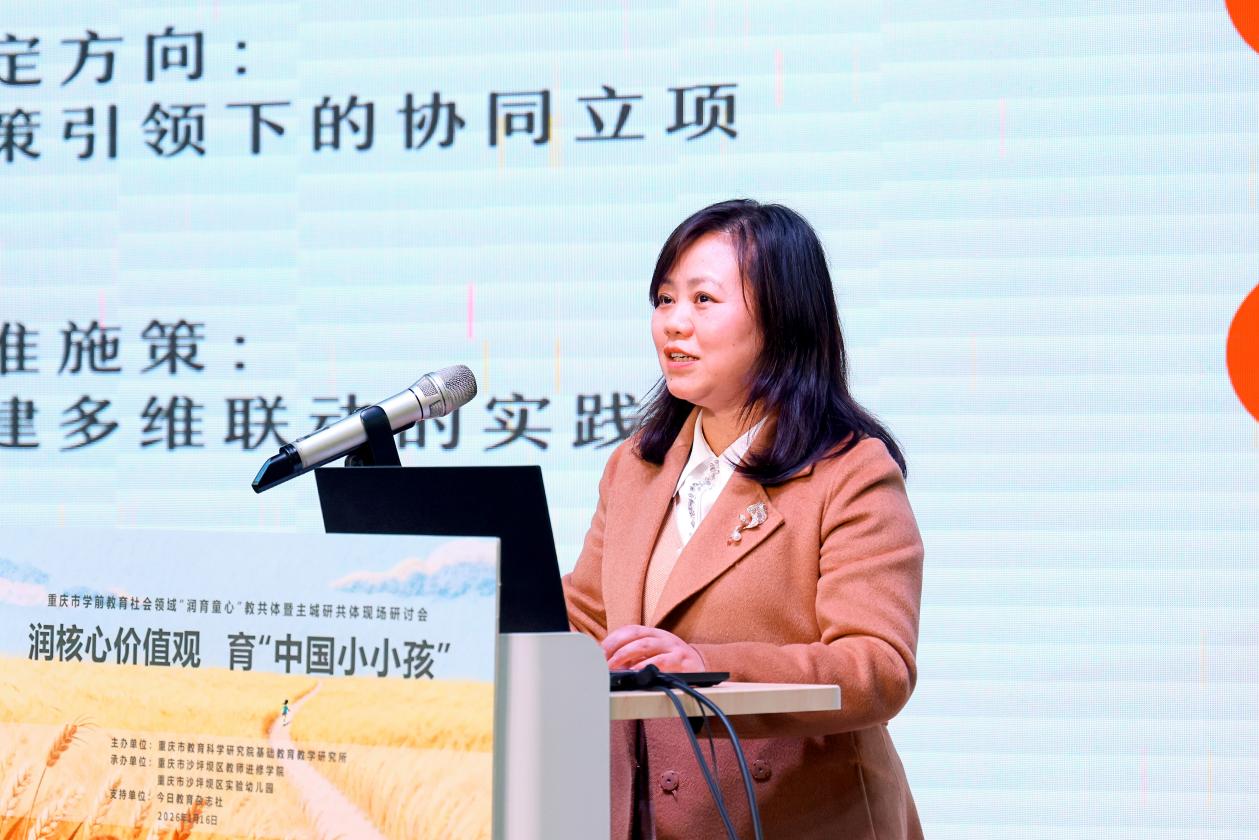 1月16日,重庆市学前教育“润育童心”教共体暨主城研共体现场研讨会在沙坪坝区实验幼儿园举行。本次会议以“润核心价值观·育‘中国小小孩’”为主题,集中展示了重庆市将社会主义核心价值观融入学前教育的创新实践与系统思考。