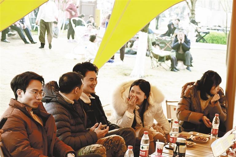 与此同时,散布在园区内的三个双人协作任务点,成为培养默契的“加速器”。在“信任盲寻”中,一人蒙眼,完全依靠搭档清晰的口头指引在限定区域寻找目标道具;“暖冬合影挑战”要求搭档在浪漫打卡点共同完成指定创意pose;“默契灯谜台”则考验二人的思维同步与知识储备。每完成一项任务,不仅能积累团队积分,还能获得可兑换暖心零食的“梅花券”。 “做完蒙眼任务,突然就和搭档有话聊了。”参与者刘女士分享道:“虽然看不见,但听着他的指引特别安心,就像多了一双眼睛,我们很快找到了三个道具,配合超默契!” 游戏落幕,心动延续 下午4:00,激烈的追逐暂告段落,活动进入温馨松弛的露营野餐茶话会环节。大家围坐在一起,根据喜好开始“狼人杀”和“谁是卧底”两桌游戏,嘉宾主动担任裁判,大家迅速进入角色,狼人、村民、预言家和卧底争相发言,开心畅玩,现场沉浸在激烈欢快的游戏氛围中。游戏后大家凭借游戏中赢取的卡片积分兑换热饮与精致茶点,围坐在一起,分享下午的趣事与糗事。主办方精心准备的话题卡——“活动中最让你印象深刻的人”“理想的周末约会方式是什么”——引导着交流自然走向深入。 随后,主办方为综合积分最高的“王牌战队”,以及荣获“最佳默契搭档”“活力闪耀之星”称号的个人颁发了定制纪念品。