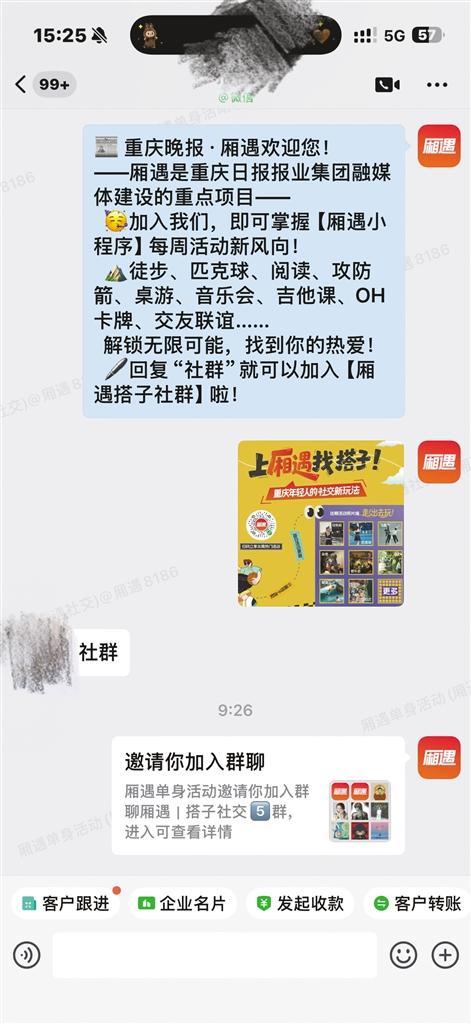 推荐官 从“懂需求”到“暖跟进” 厢遇“CP”搭子推荐官的工作,核心是“锚定具体搭子需求”——用户联系推荐官后,团队会先细致沟通偏好:是想找周末一起爬山的户外搭子,还是下班约饭的干饭搭子,或是同好分享的兴趣搭子? 哪怕是需求模糊的用户,只要你想找搭子,推荐官也会引导用户梳理核心诉求。 需求明确后,推荐官启动双渠道匹配:一方面从厢遇小程序“搭子广场”筛选兴趣契合的嘉宾,另一方面借助平台政企合作的青年资料库,挖掘“同区域、同生活节奏”的适配人选。 正式牵线前,推荐官会初步核对信息降低社交成本;牵线后还会提供“搭子破冰小技巧”,帮用户打破初次交流的尴尬。 即便单次匹配暂未合拍,后续若有适配的搭子人选,推荐官也会主动免费续牵;针对“分值查看嘉宾信息”等平台规则,推荐官也会细心说明。 优势多 开启“精准+安全+暖心”模式 相较于常规交友平台,厢遇“CP”搭子推荐官服务的核心优势,在于“更懂重庆、更重细节”。 ●本地属性适配 推荐官熟悉重庆各区域生活节奏,优先匹配同通勤、同活动范围的伙伴,避免“跨区赴约太折腾”的问题。 ●双渠道资源覆盖 既整合小程序公开的兴趣搭子信息,也联动政企青年资料库,挖掘“不常发动态但兴趣契合”的潜在搭子。 ●全程贴心支持 牵线前筛选信息降低风险、牵线中提供交流技巧、牵线后持续跟进续牵,形成“一站式”交友辅助。 ●零隐藏成本 服务全程免费,提前讲清平台规则,让青年安心找搭子。 用户 “终于遇到懂重庆人的牵线助手” 目前,厢遇“CP”搭子推荐官的工作效率,用户都知道,吃小面搭子、探店搭子、打匹克球搭子……都无意外,有惊喜! “推荐官把规则讲得很清楚,还说会帮我找能一起打匹克球的搭子。” ——网名“钢铁侠”,28岁,互联网程序员 “我就想找个下班能一起吃小面的搭子,没敢提太多要求,推荐官没嫌我‘需求简单’,反而帮我找了两个同小区的饭搭子。” ——网名“小个头”,30岁,国企行政专员 “我是咖啡师,想找能一起探店的咖啡搭子,推荐官直接从资料库扒出两个同好,现在我们每周都约着试新豆子!” ——网名“咖啡师阿泽”,26岁,独立咖啡师 “之前匹配的搭子时间凑不上,本来没抱希望,上周推荐官突然推了个同单位能一起摸鱼喝咖啡的搭子,这种‘后续跟进’太戳人了。” ——网名“插画师林林”,27岁,自由插画师 声音 “终于遇到懂重庆人的牵线助手” “我们想做重庆青年的‘搭子社交助手’。” ——厢遇相关负责人 厢遇相关负责人说,“CP”搭子推荐官会持续以兴趣和生活圈为核心,帮更多重庆青年找到“随叫随到的合拍伙伴”。有找搭子需求的朋友,可直接咨询厢遇“CP”搭子推荐官了解详情。
