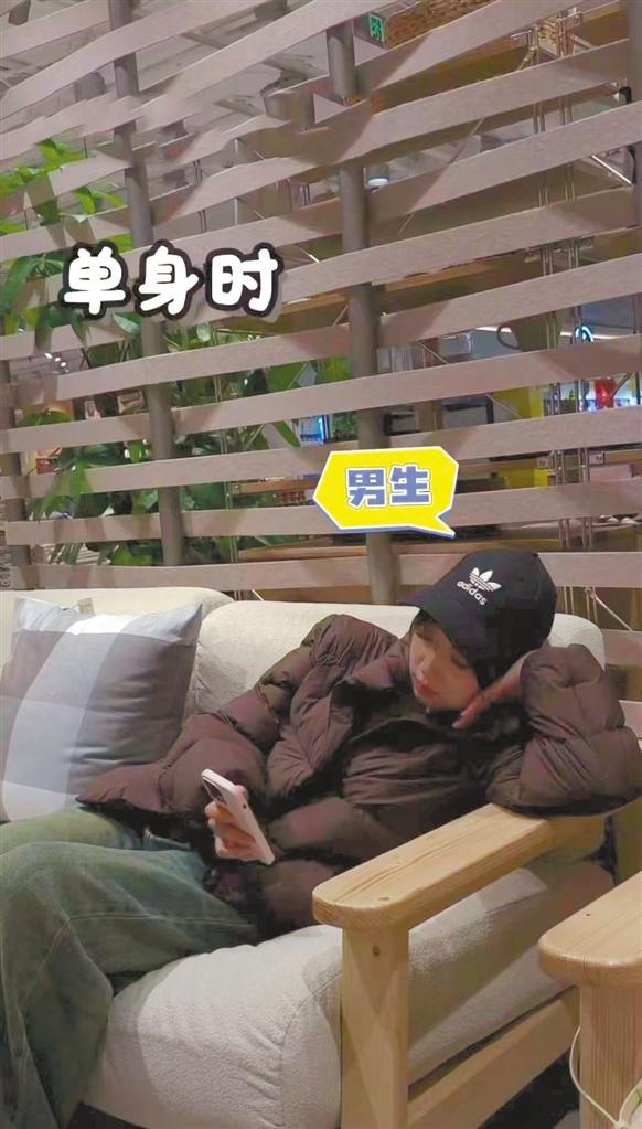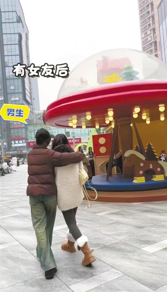 近日,一段聚焦“有女友前后”生活反差的短视频,引发了网友的热议。镜头从街头延伸到餐厅、沙发、宠物店等地,用最接地气的场景对比,精准戳中千万网友的情感共鸣——有人直呼“好幸福”,有人夸“爱看,多拍”,也有人笑着调侃“有了对象之后就变得麻烦了”,评论区里满是对爱情最真实的赞叹与打趣。 这段甜蜜又接地气的日常,由重庆晚报主播倾情演绎,其中主播“白泡泡”的“反串”出演,更给视频添了一抹意外的幽默色彩。没有女友时,重庆“崽儿”的生活是妥妥的“单身”模式:热闹的街头,他独自行走在人潮中,身影透着藏不住的孤单;餐厅里,简单的吃食扒几口便了事,毫无仪式感;沙发上,只能对着手机消磨漫漫长夜;地下通道的宠物店里,再可爱的小狗也只能隔着玻璃远远打量,少了分享的欢喜;等车的寒风中,唯有自己裹紧衣裳,无人牵挂。