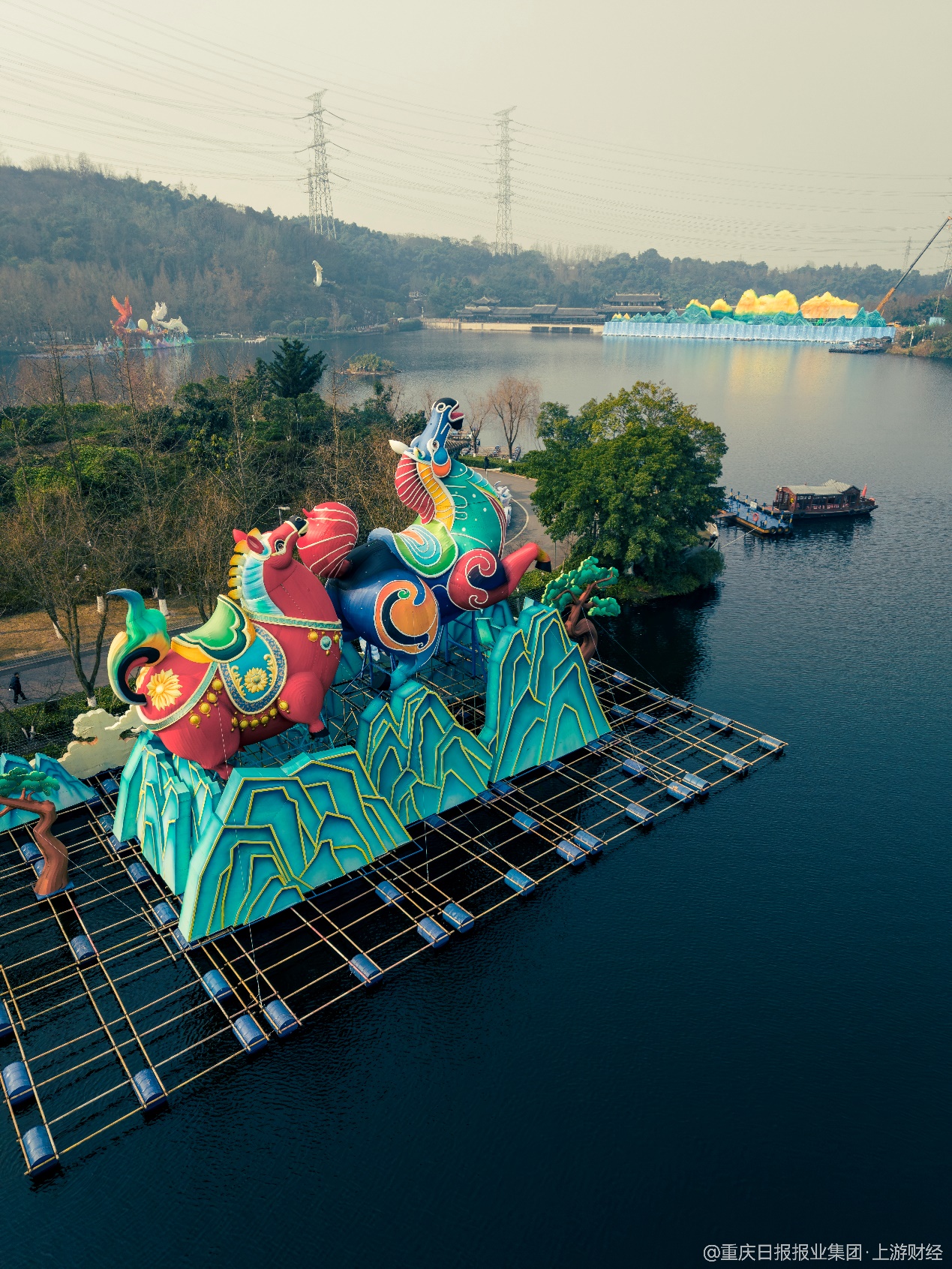 现场图 入园禁带无人机、气球、宠物 重庆市城市管理局提醒,基于公共安全考虑,灯会沿湖封闭区域禁止入园。活动期间,不允许进行直播活动,不允许携带及出售气球,禁止携带易燃易爆物品,宠物禁止入园,仅导盲犬、警犬等特殊工作犬凭证件可入园。 灯会现场禁止携带自行车、滑板车、平衡车等通行工具,但轮椅、婴儿车等无障碍设备允许携带。现场禁止携带危险物品涵盖管制刀具、枪支弹药、毒害性或腐蚀性物质等危害公共安全的物品。 禁止携带航拍与升空设备如无人机、风筝等,确需使用须提前申请获批。 “举办这次灯会,不仅是资源整合,也是跨界推动文旅融合、提升城市品牌形象的重要尝试。”重庆日报报业集团相关负责人称,作为党媒,为服务文旅融合与城市形象提升,集团正大力发展“媒体+文旅”新业态模式,策划大型文旅节庆是主动融入城市发展战略、服务新重庆建设的务实举措。 打造“禧欢霓”水上灯会的文旅IP,也是重庆日报报业集团探索“内容+场景+消费”新业态的重要尝试,将媒体品牌影响力延伸至线下,服务地方经济社会发展。为广大市民和游客提供一个高品质的新春文旅产品,营造喜庆祥和的节日氛围,让大家在“灯海映山城”中感受重庆的山水人文魅力,提升城市生活品质与幸福感。 本次灯会不仅是一次活动,更是一次融合转型的“练兵场”,让灯会融合文化、科技与商业,是集团从“内容生产商”向“城市文化运营商”转型的重要探索,为后续打造更多文旅IP积累宝贵经验。
